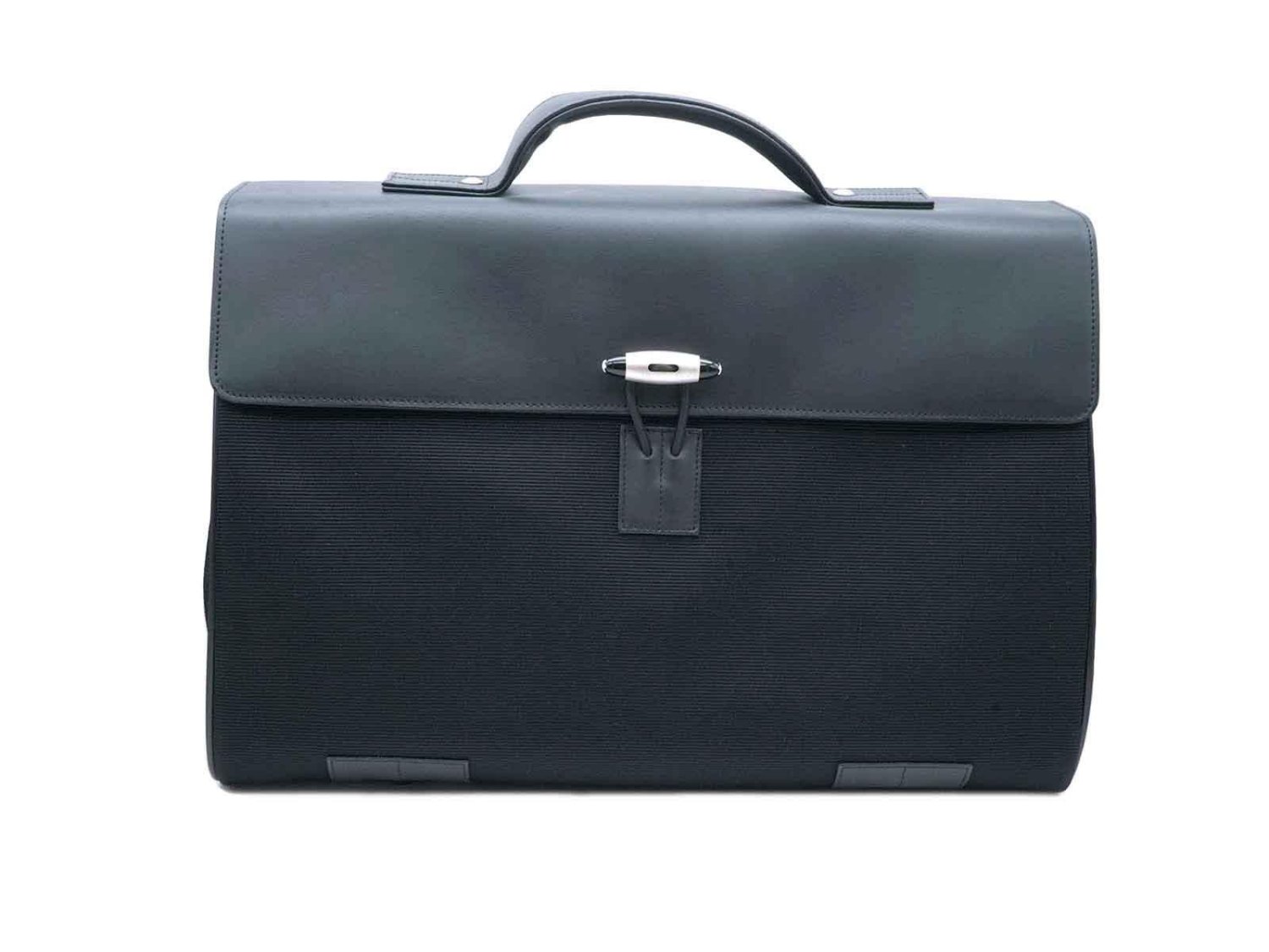 MONTBLANC Nightflight cartella a doppio soffietto in pelle e tessuto nero Ref. 8772. NUOVA!
