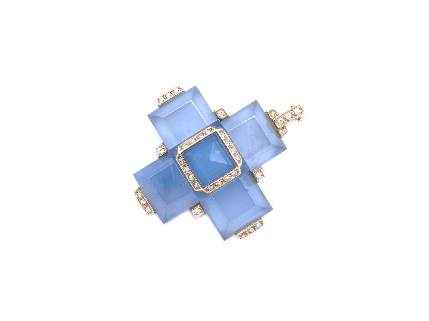 MOONLIGHT ciondolo croce in oro rosa 18Kt con calcedonio Ref. P720CBM. NUOVO!