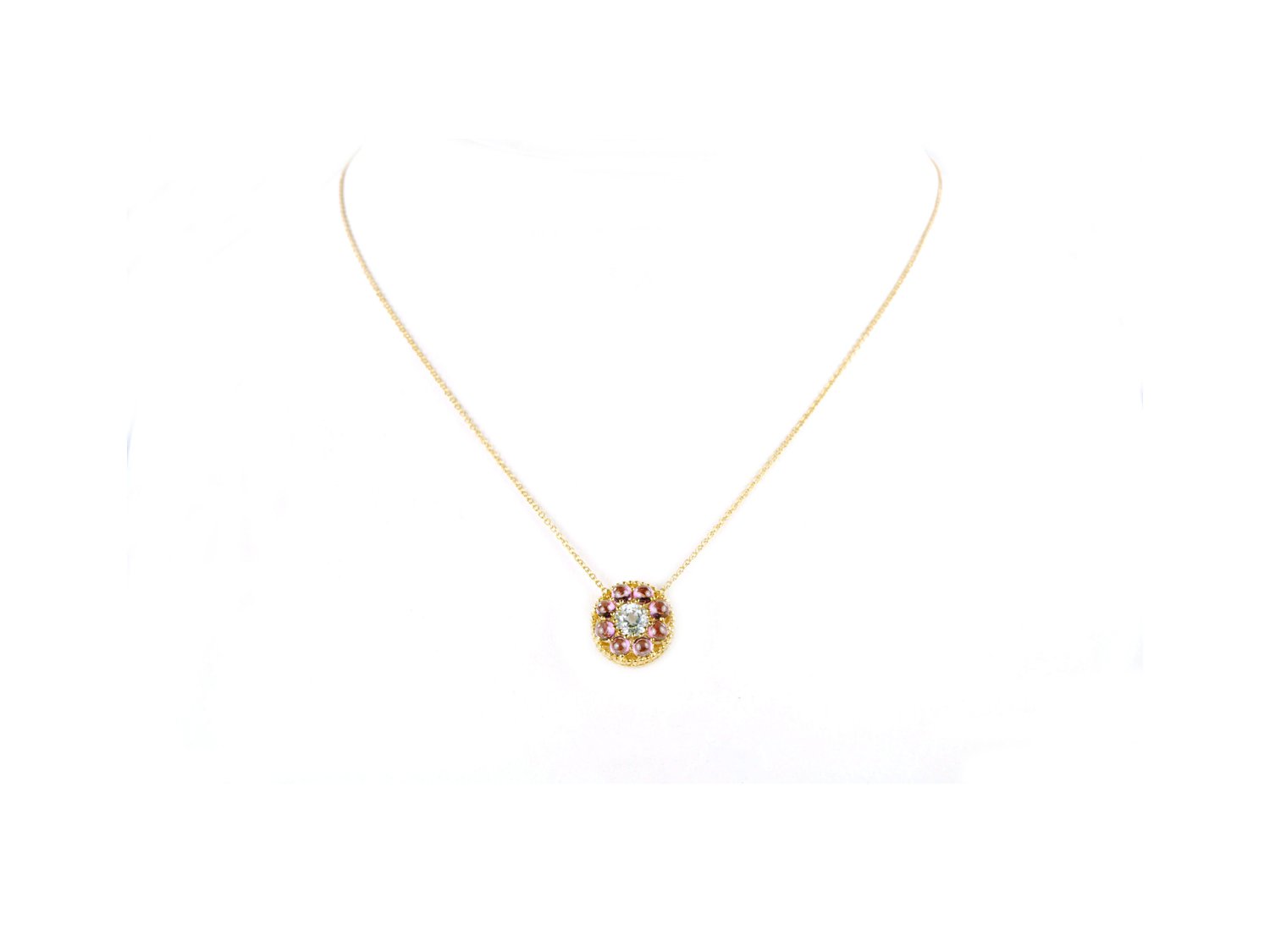 Name NANIS Notredame necklace in 18Kt yellow gold with rhodolite and blue topaz Ref. CN12-560. NEW!