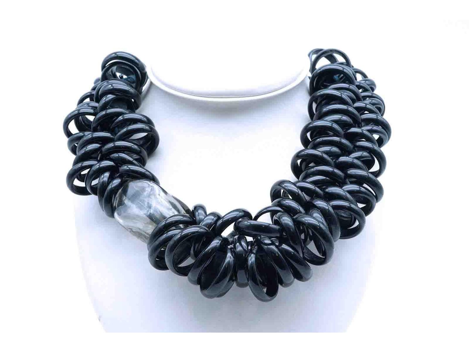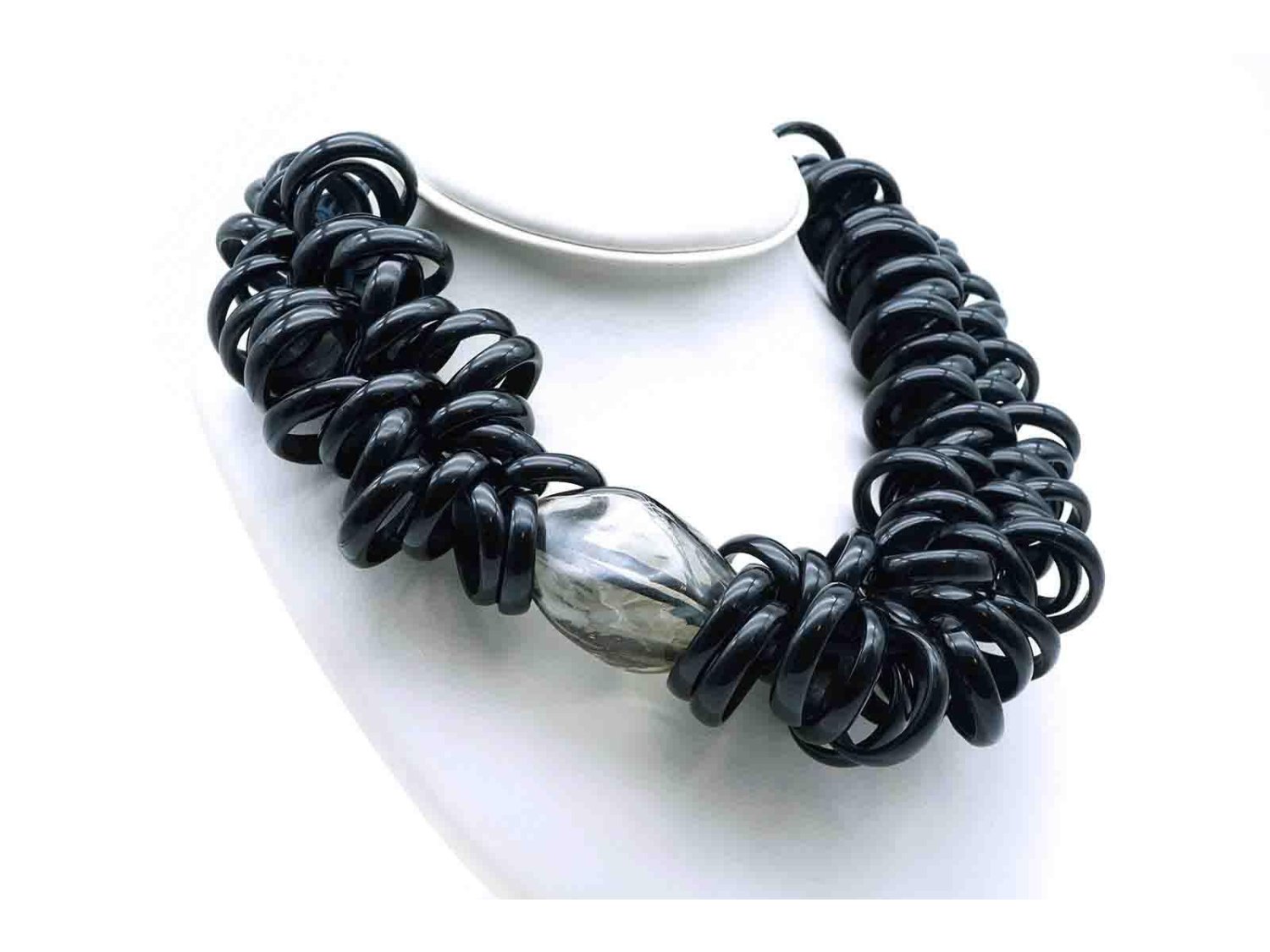 PAMURRINA collana in vetro di Murano nero. NUOVA!