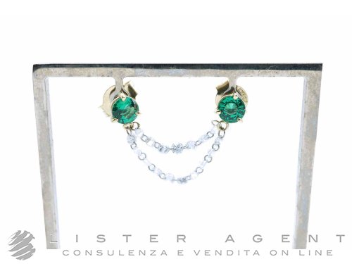 PARLAPIANO orecchino singolo Solitario per due buchi in oro giallo 18Kt con diamanti ct 0.48 e smeraldi ct 0.50 Ref. 0273/22. NUOVI!