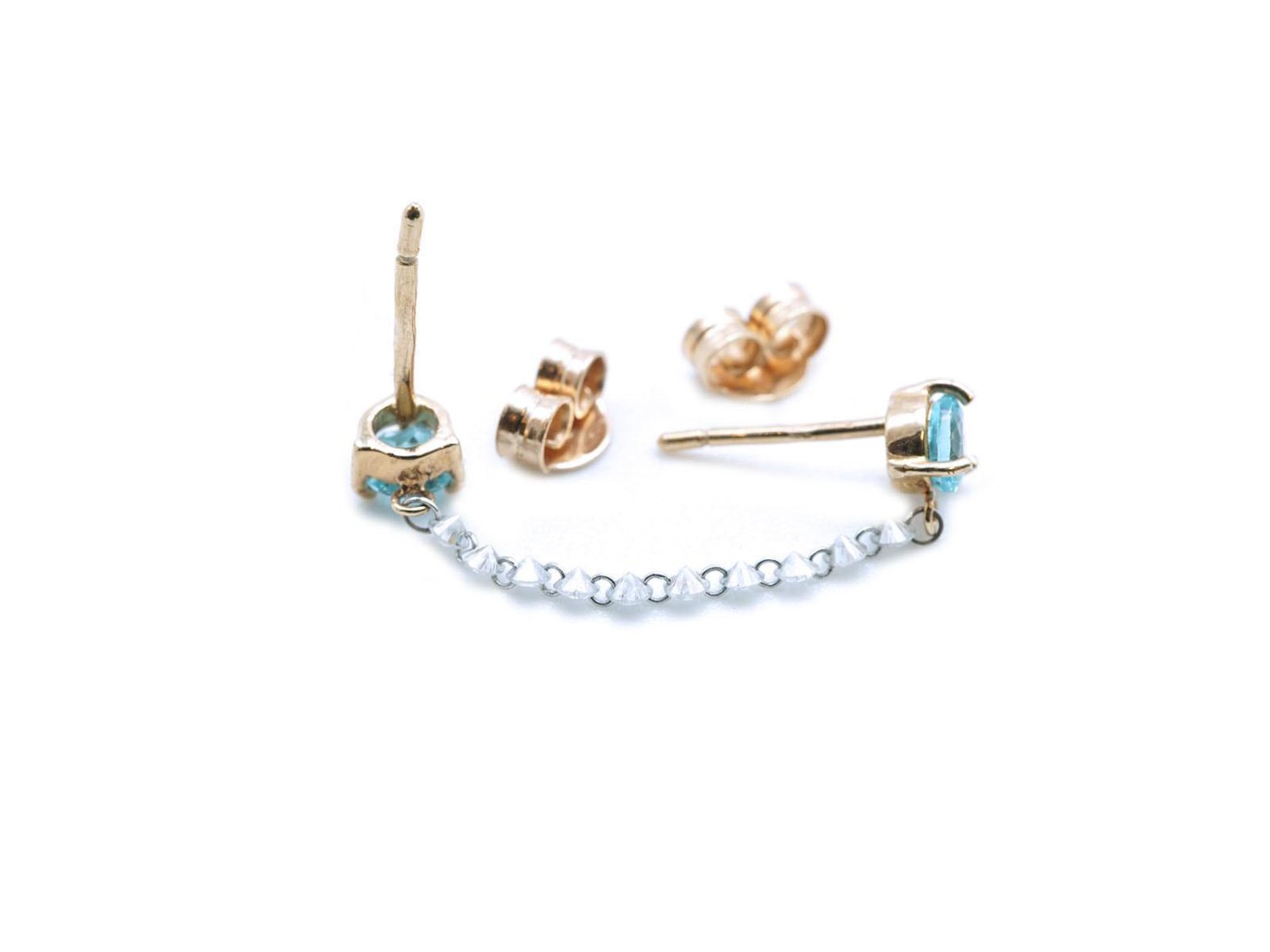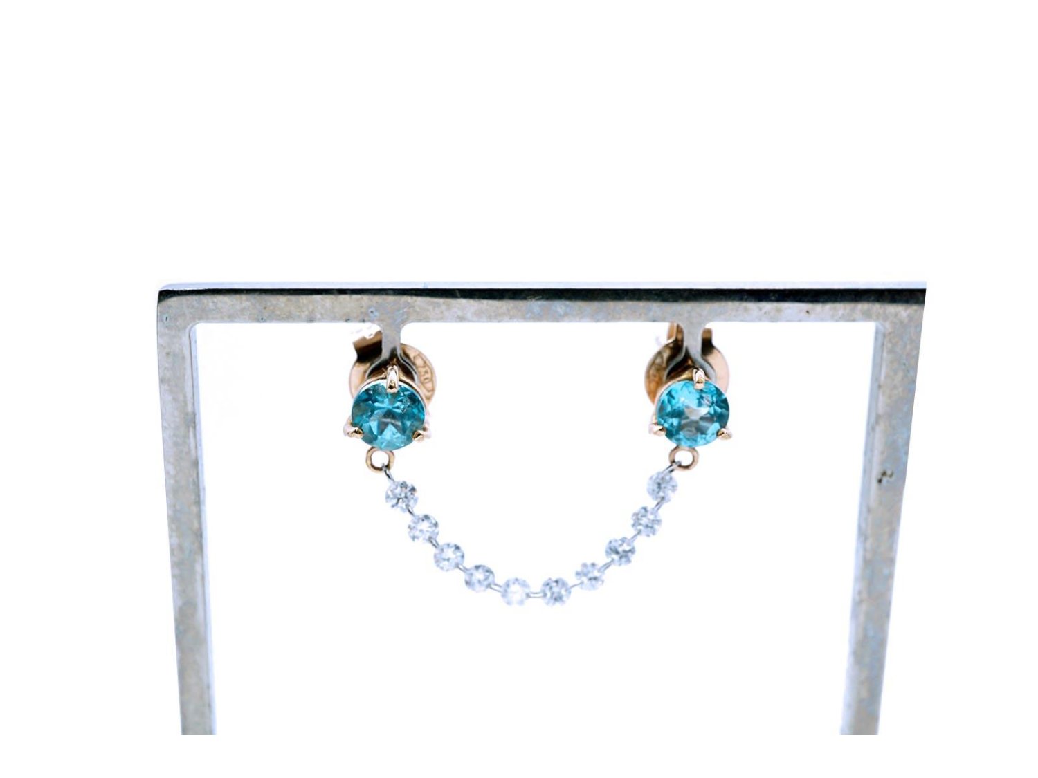 PARLAPIANO orecchino singolo Solitario per due buchi in oro rosa 18Kt con acquamarina ct 0.52 e diamanti ct 0.30 Ref. 0273/11/5. NUOVI!