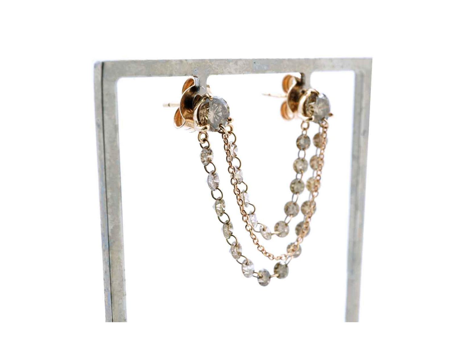 PARLAPIANO orecchino singolo Solitario per due buchi in oro rosa 18Kt con diamanti brown ct 2.18 Ref. 0273/8. NUOVI!