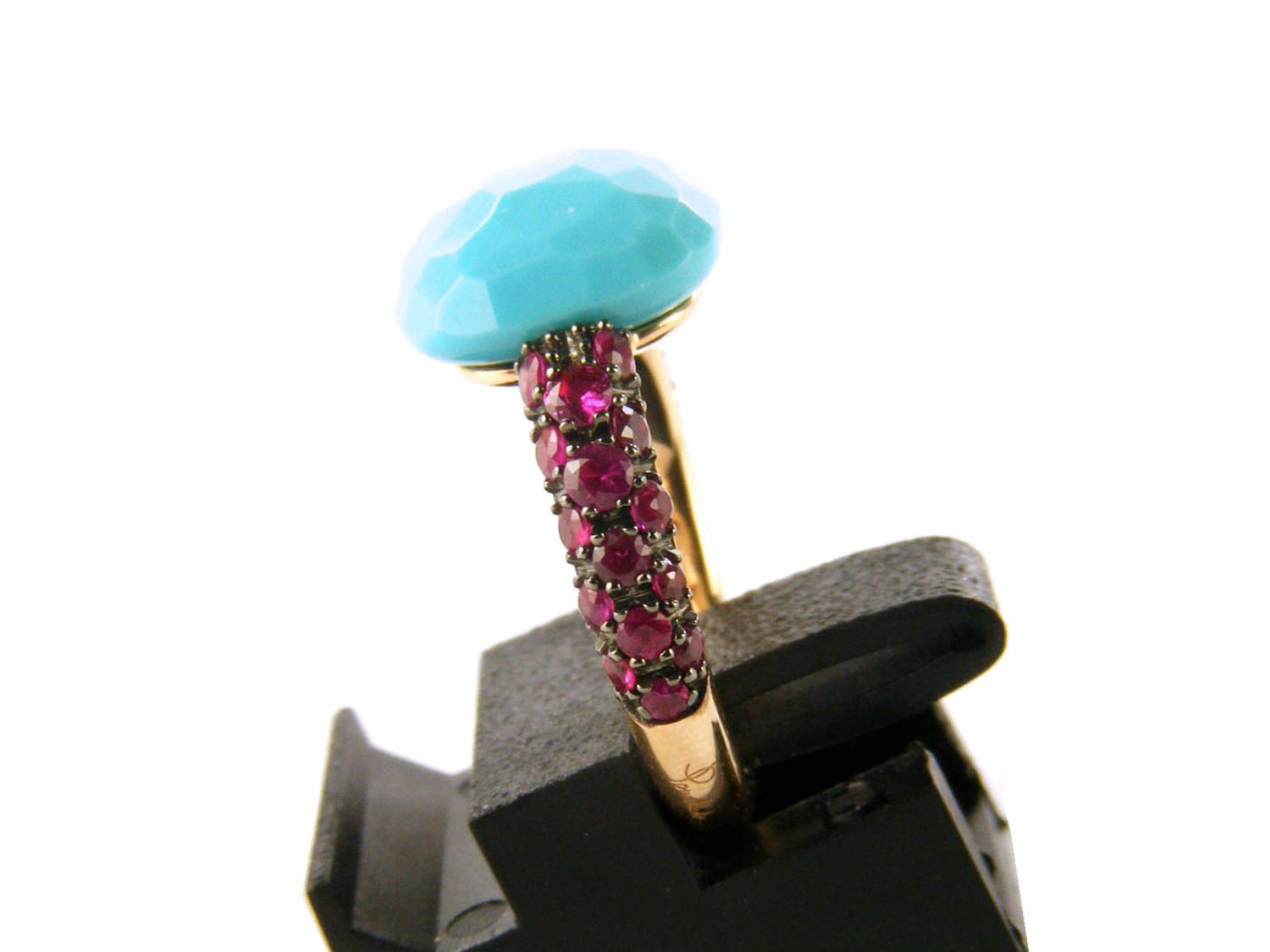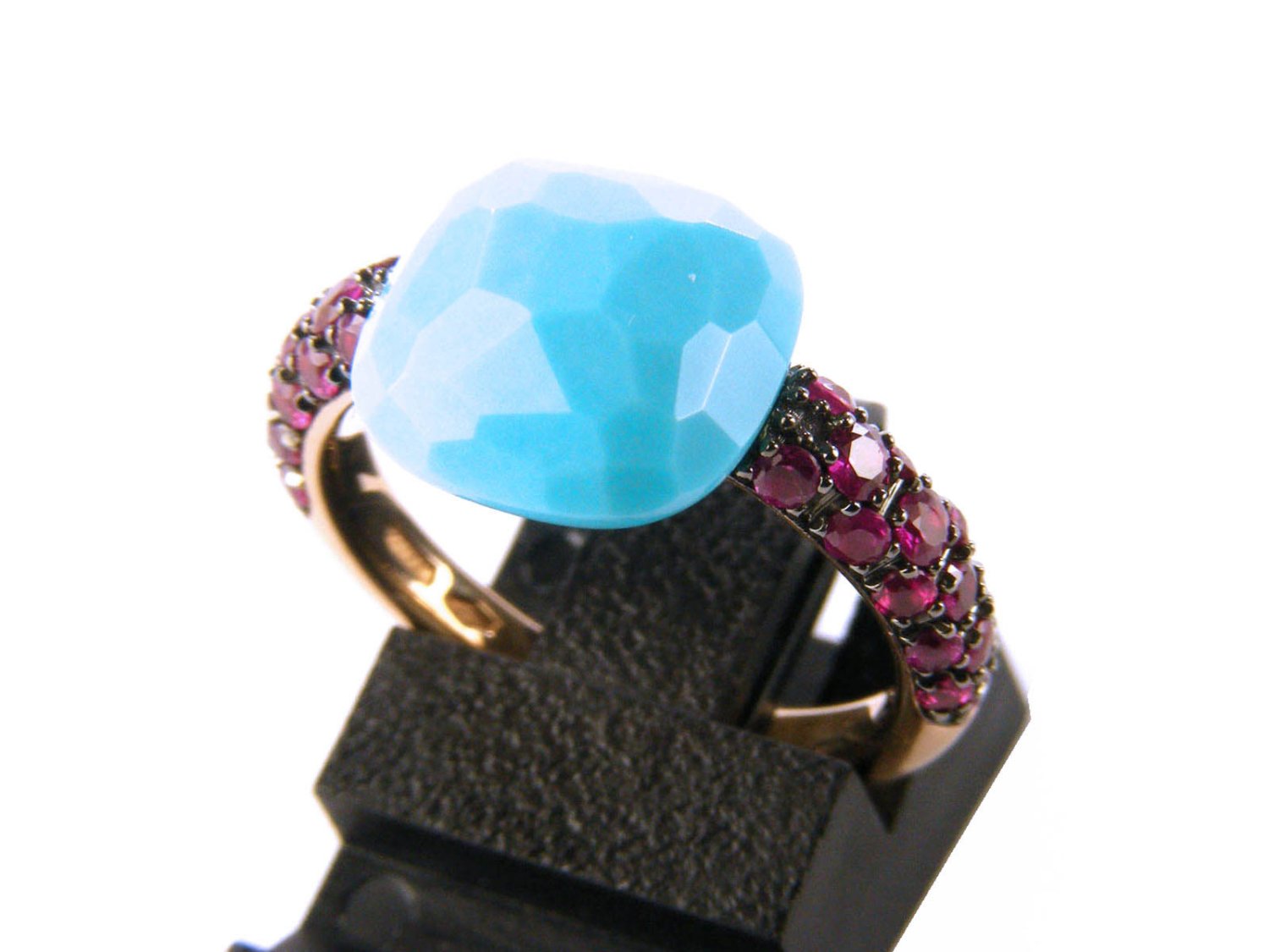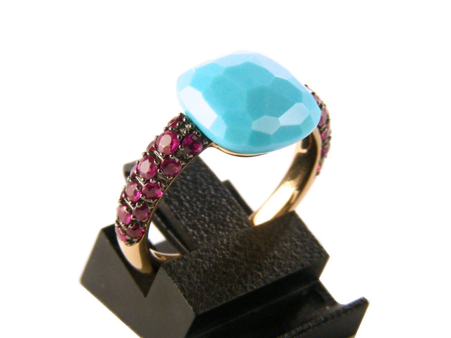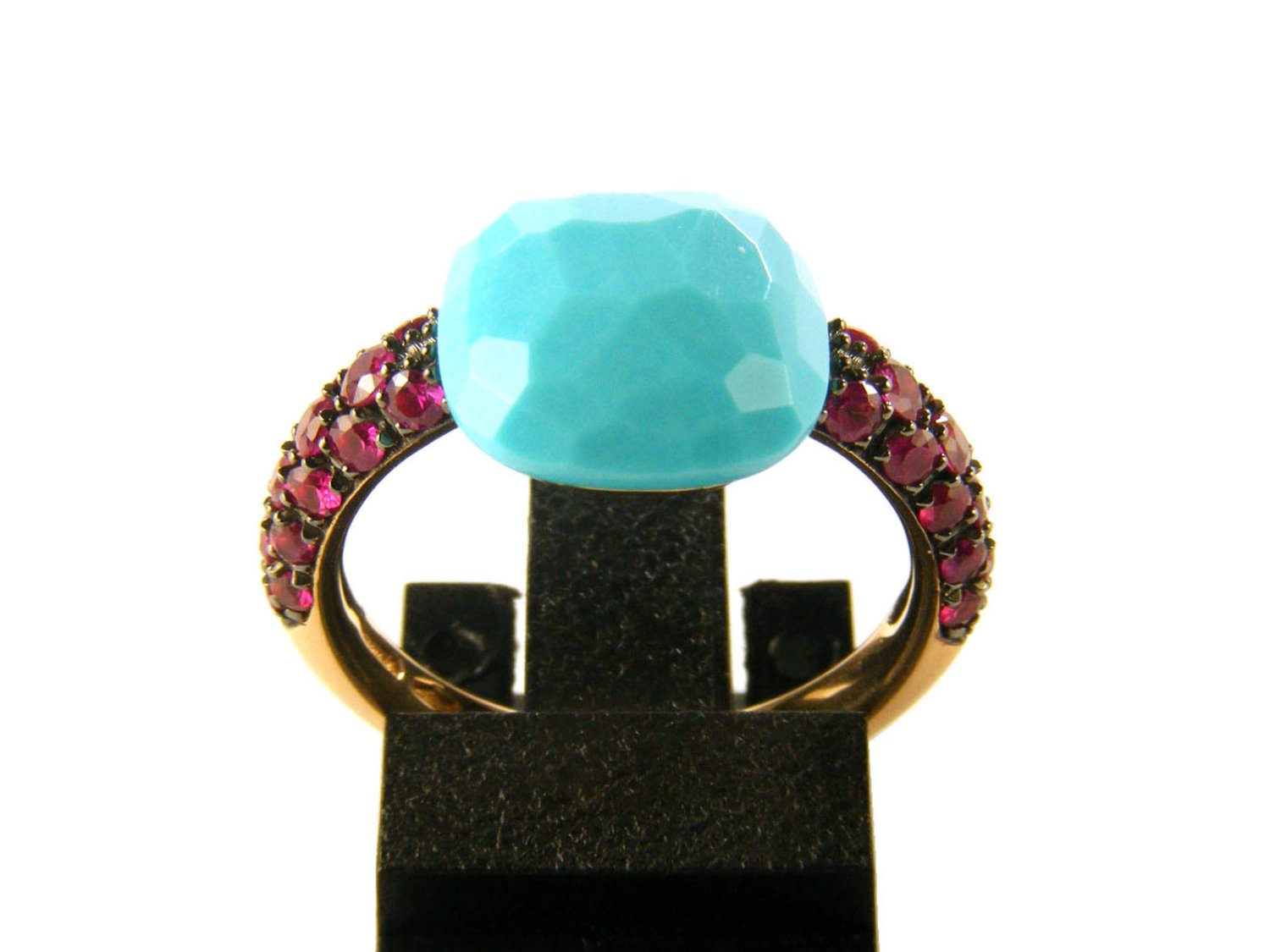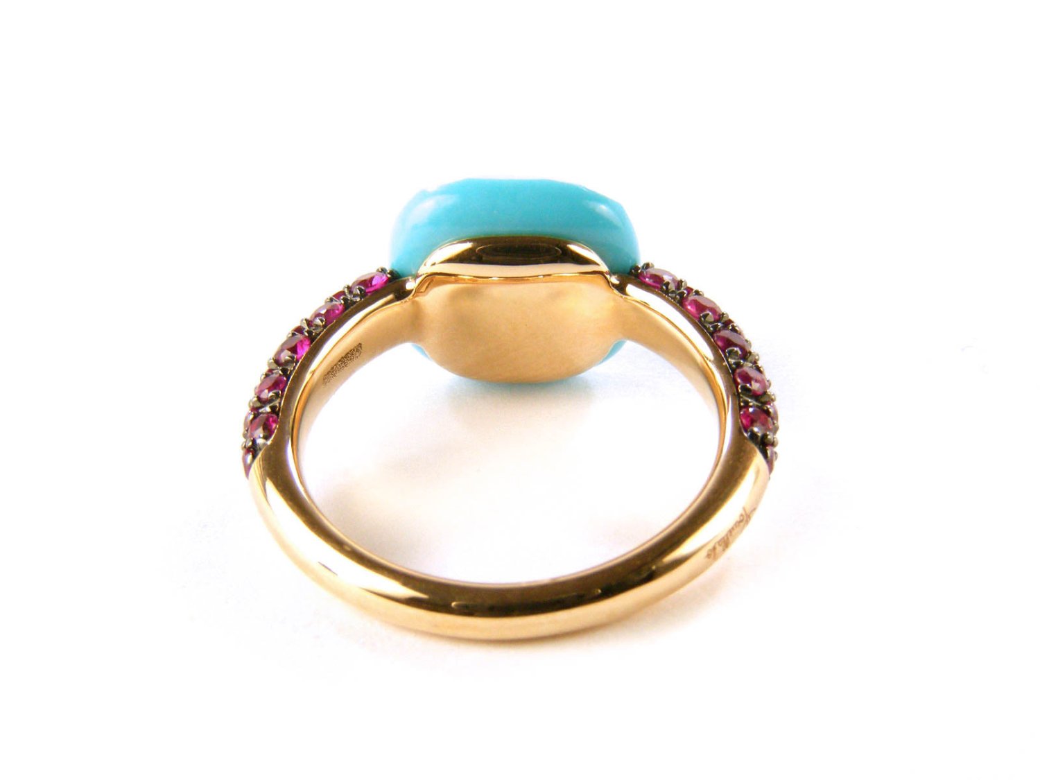 POMELLATO ring Capri in 18Kt rose gold with rubies and turquoise Size 12 Ref. AB104O7RTU. NEW!