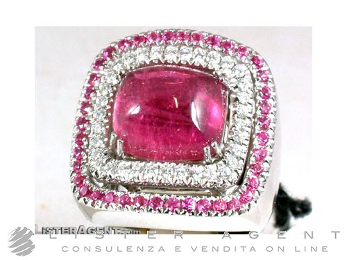 RING in 18Kt white gold, rose tourmaline, diamonds and rose sapphires. NEW!
