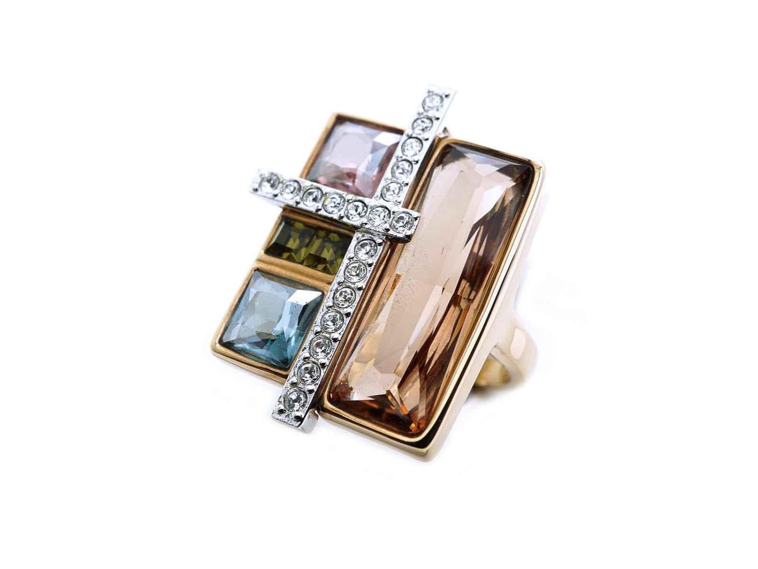SWAROVSKI anello Mosaic in metallo placcato oro rosa e cristalli bianchi e colorati Misura 15. NUOVO!