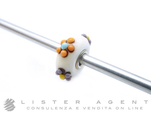 TROLLBEADS beads collezione Thun Bouquet Bianco in argento 925 e vetro bianco Ref. TGBLE-20141. NUOVO!