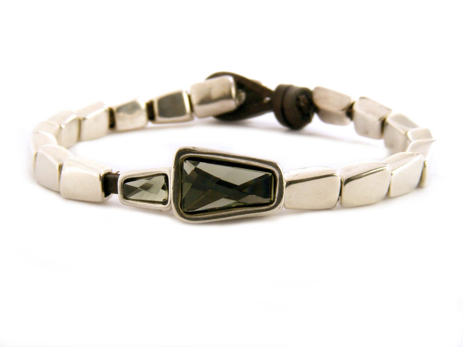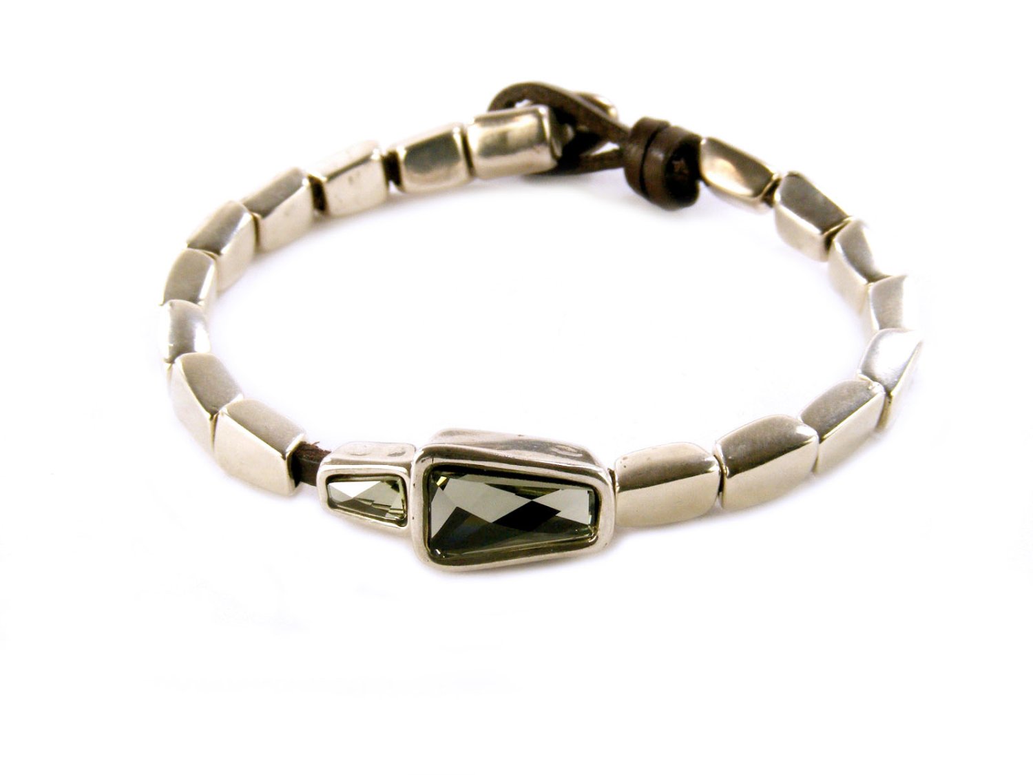 UNO DE 50 bracelet Glamatic in brown leather, metal and Swarovski Ref. 1407. NEW!