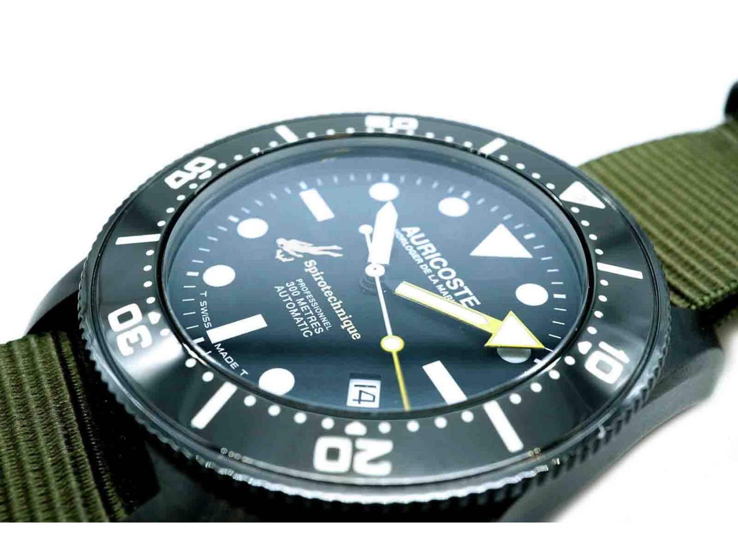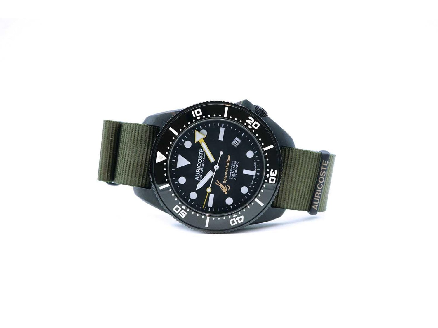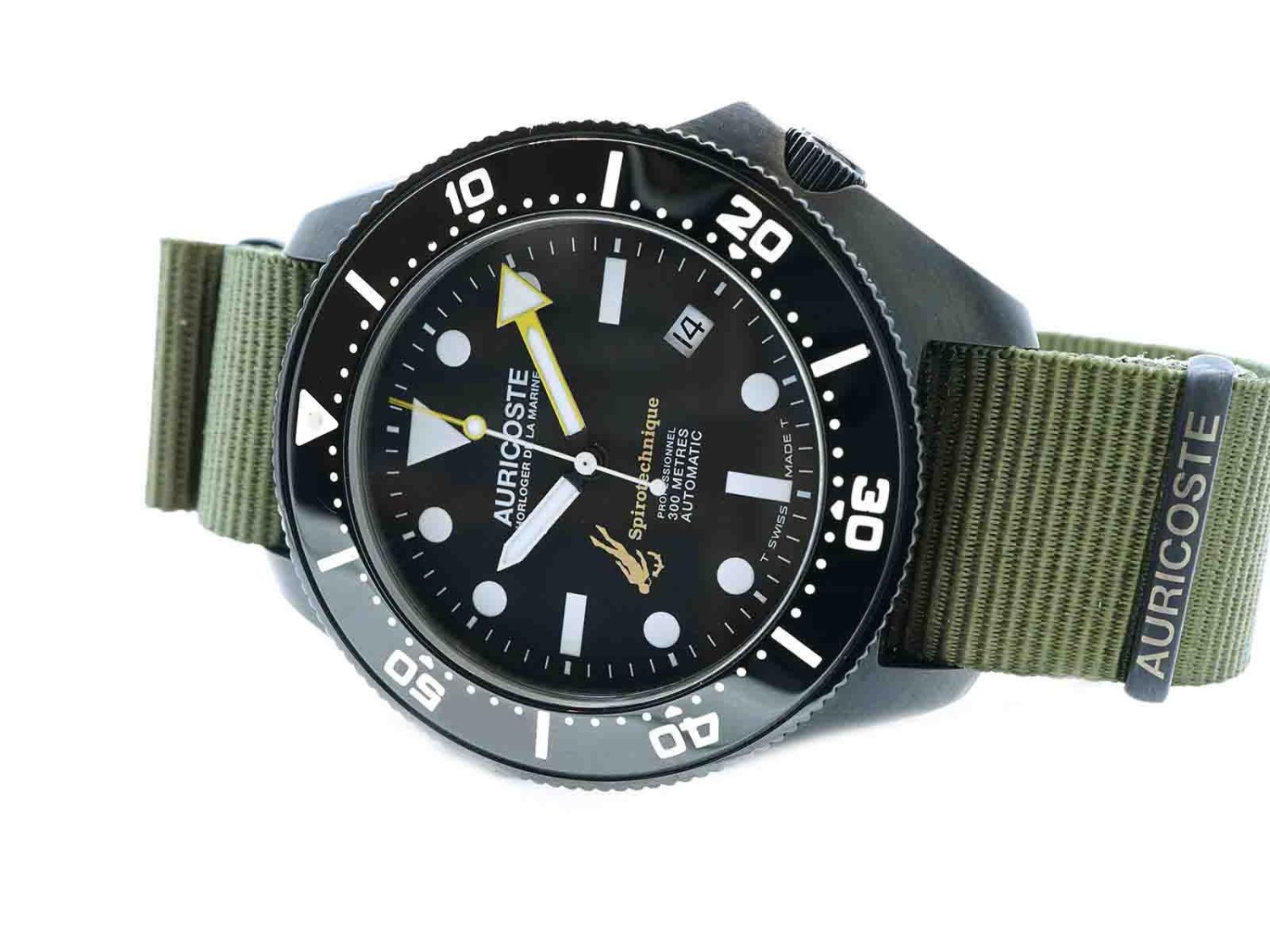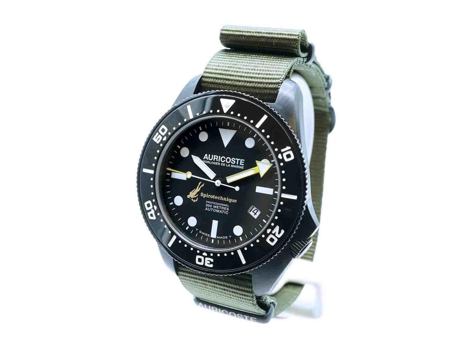 AURICOSTE Horloger de la Marine Spirotechnique automatico in acciaio PVD/Nero Nero AUT. NUOVO!