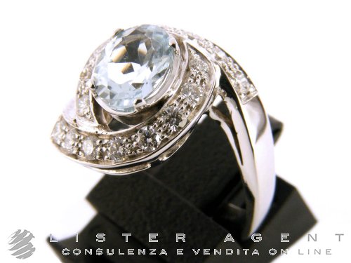 BAGUE en or blanc 18Kt avec diamants ct 0,48 H Vs et aigue-marine 1,50 Taille 15. NEUF!