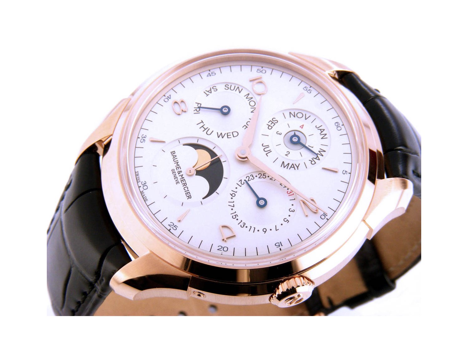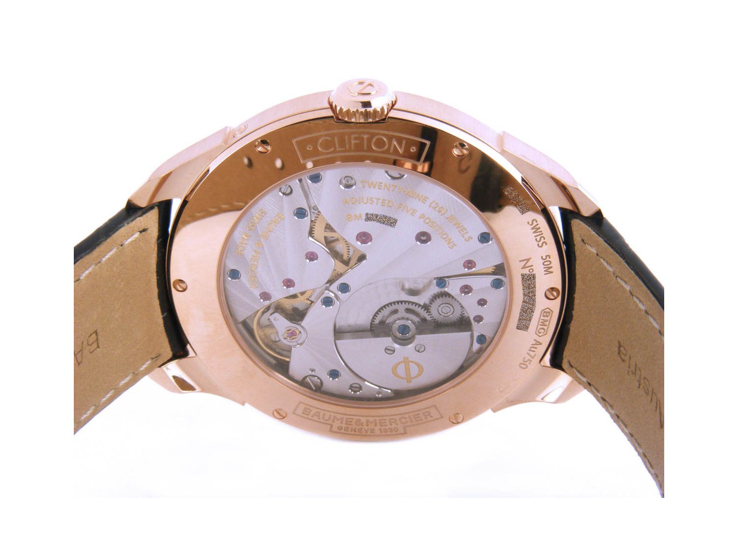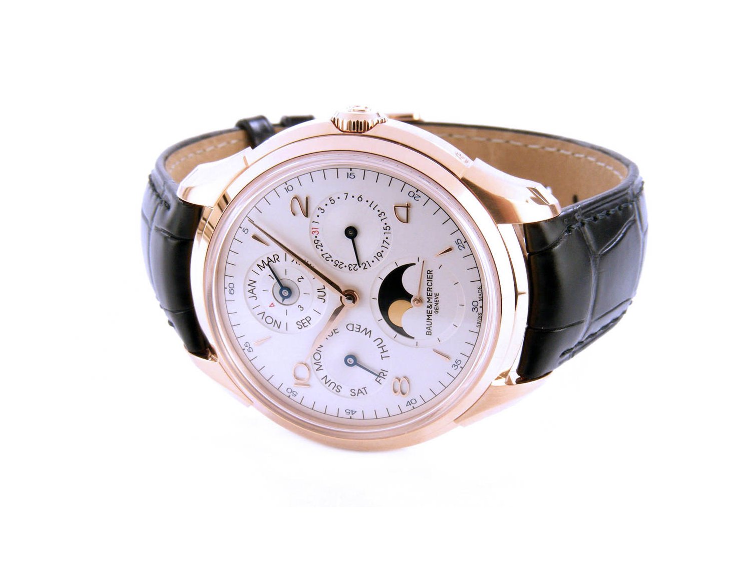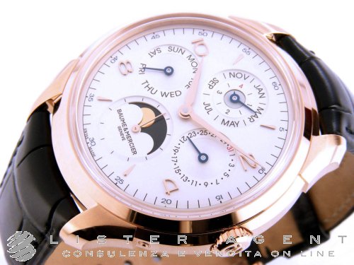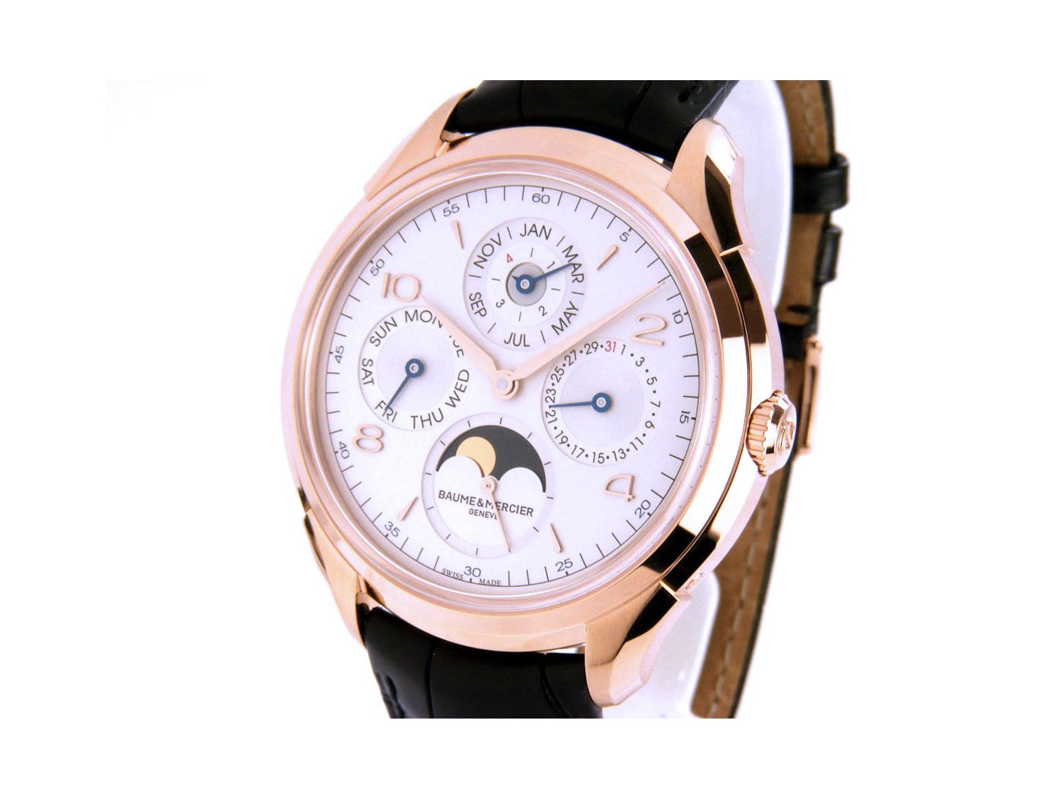 BAUME & MERCIER Clifton Calendrier complet et phases de lune automatiques en or rose 18Kt Argenté AUT Réf. MOA10306. NEUF!
