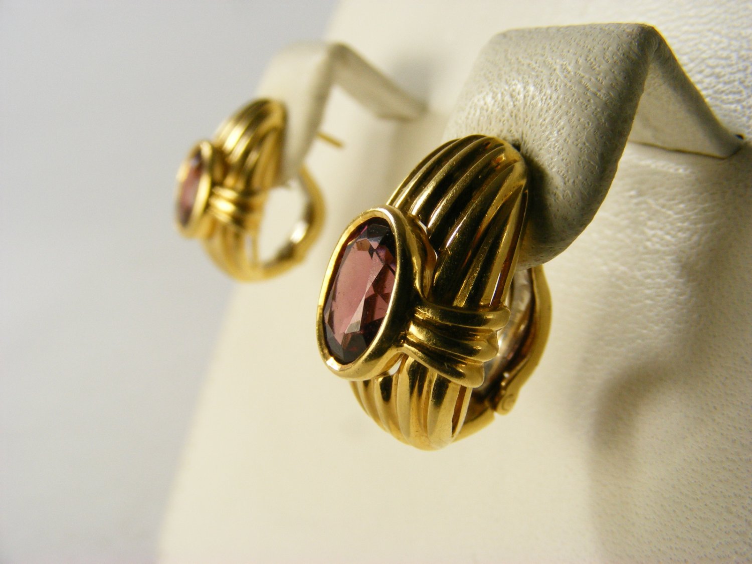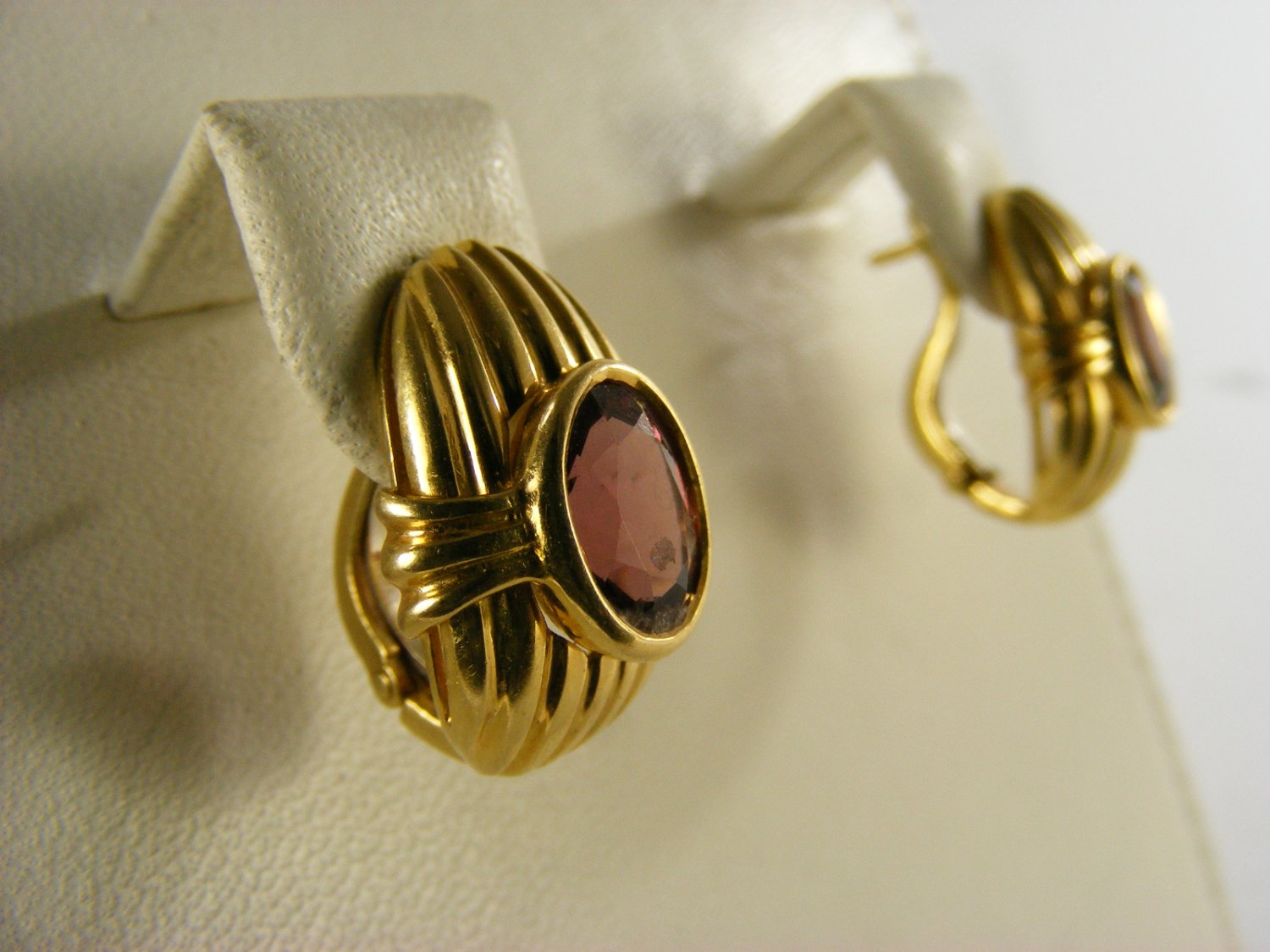 BOUCLES D'OREILLES en or jaune 18 carats et pierres naturelles. UTILISÉ!