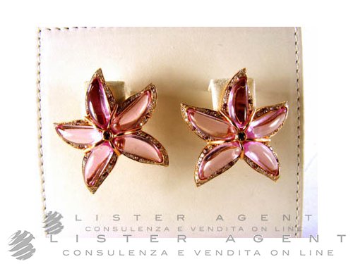 BOUCLES D'OREILLES en or rose 18Kt avec diamants ct 0,14 et tormalines roses ct 27,30. NEUF!