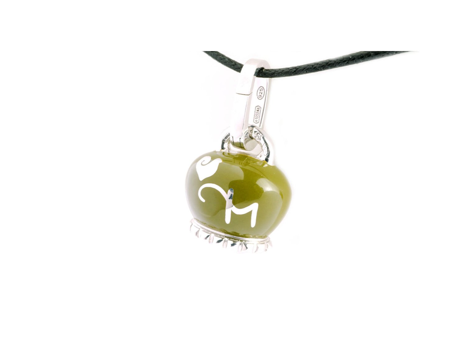 CHANTECLER pendentif Campanella en argent 925 et émail vert Ref. 36708. NEUF!
