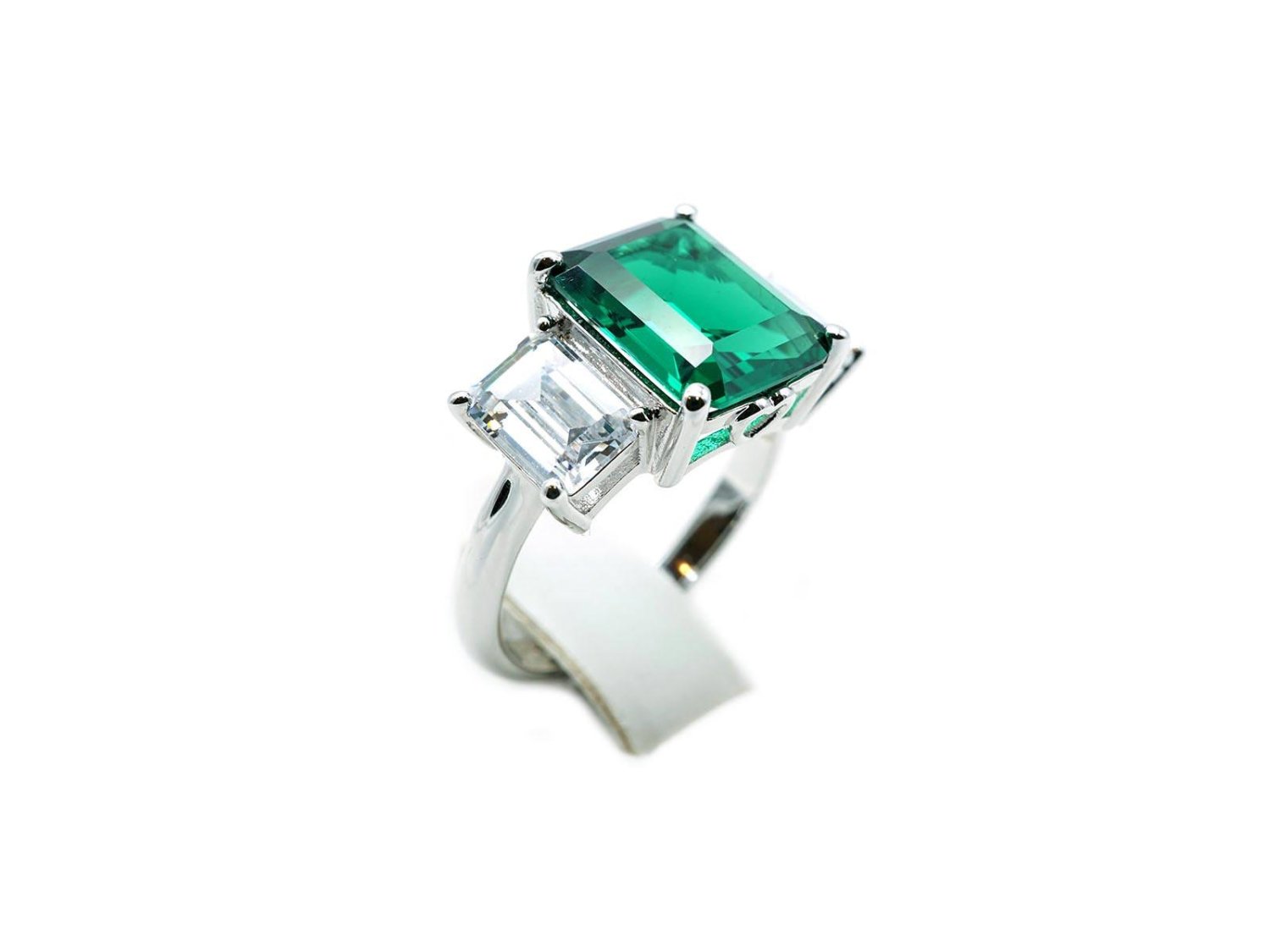 CHIARA FERRAGNI anello Smeraldo in metallo con zircone verde e bianchi Misura 14 Ref. J19AWJ05014. NUOVO!