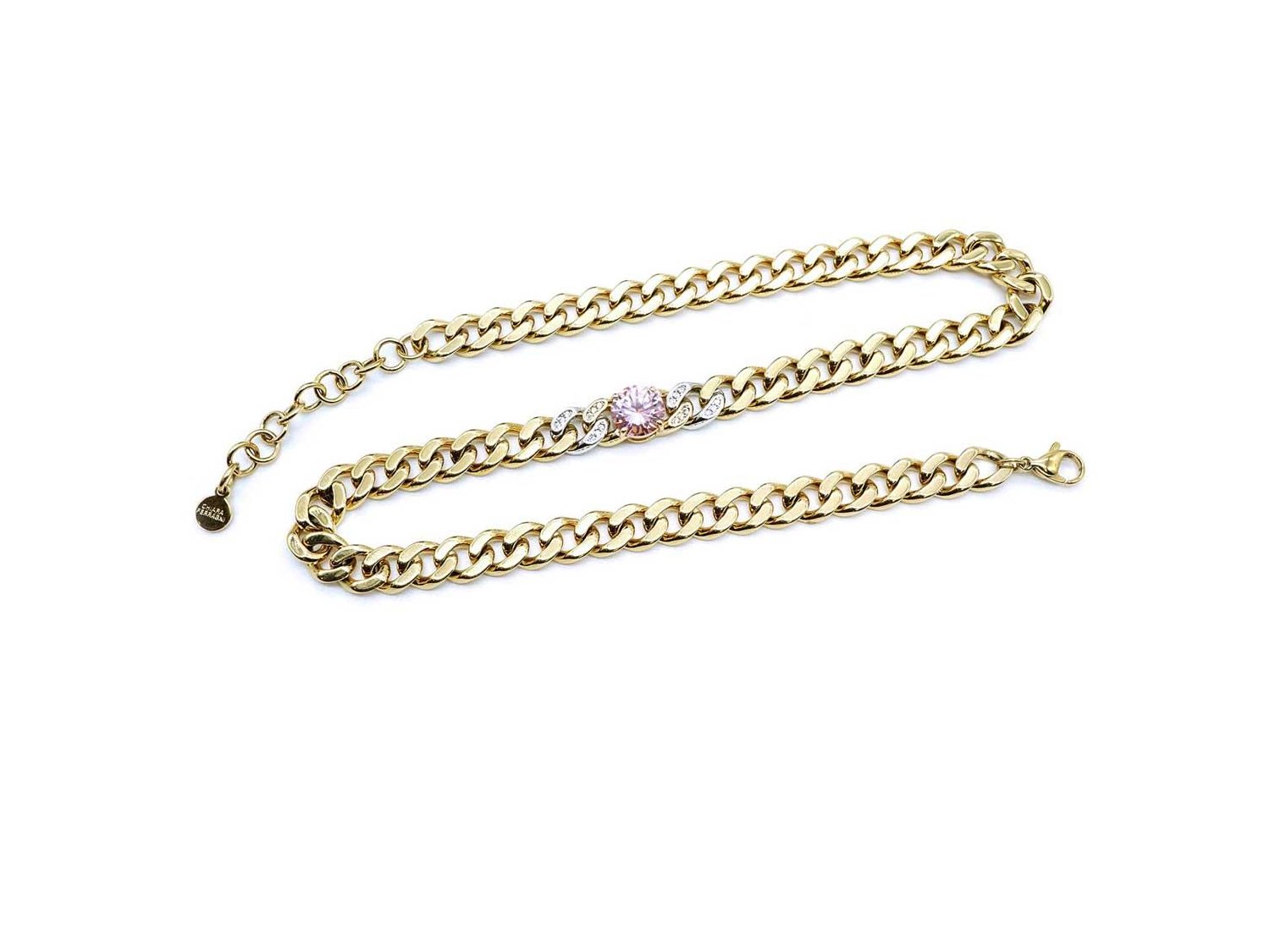 CHIARA FERRAGNI collana Chain in metallo bicolore con zirconi e cristallo rosa Ref. J19AUW25. NUOVA!