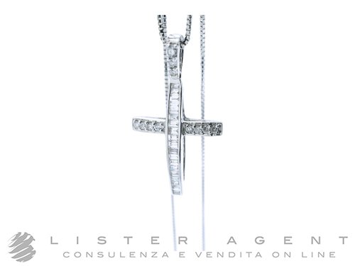 COLLANA con Croce in oro bianco 18KT e diamanti taglio rotondo e carrè ct 0.20 G Vs. NUOVA!