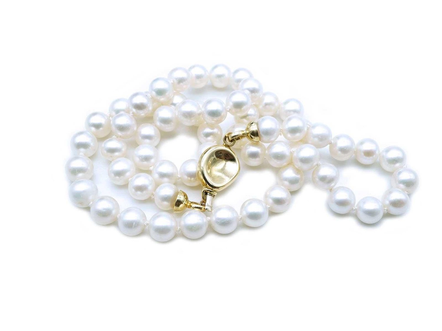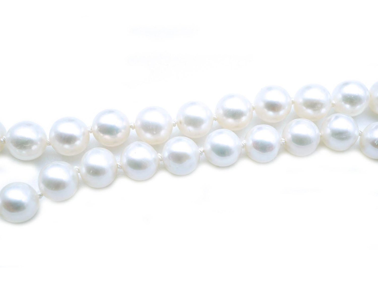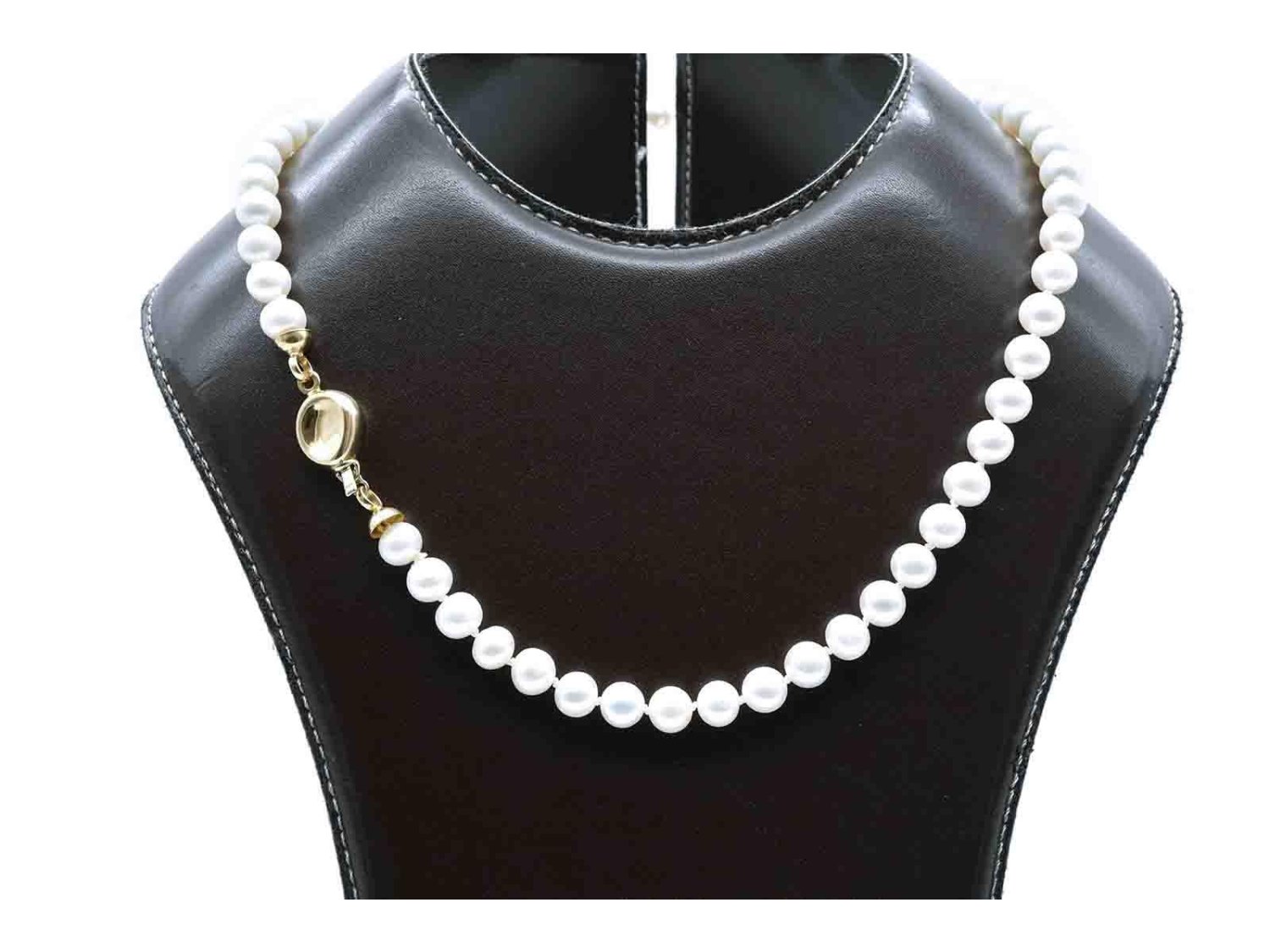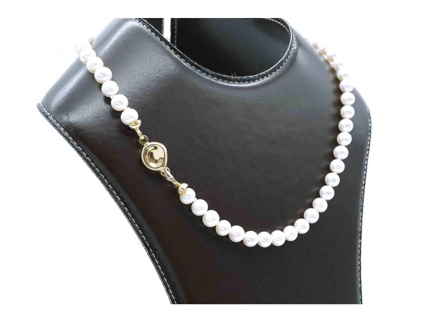 COLLANA di perle bianche naturali coltivazione acqua dolce MM 7.00 con chiusura in oro giallo 18Kt. NUOVA!