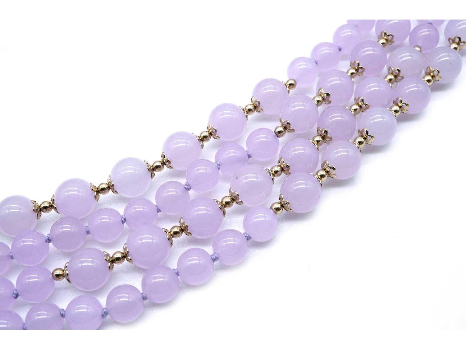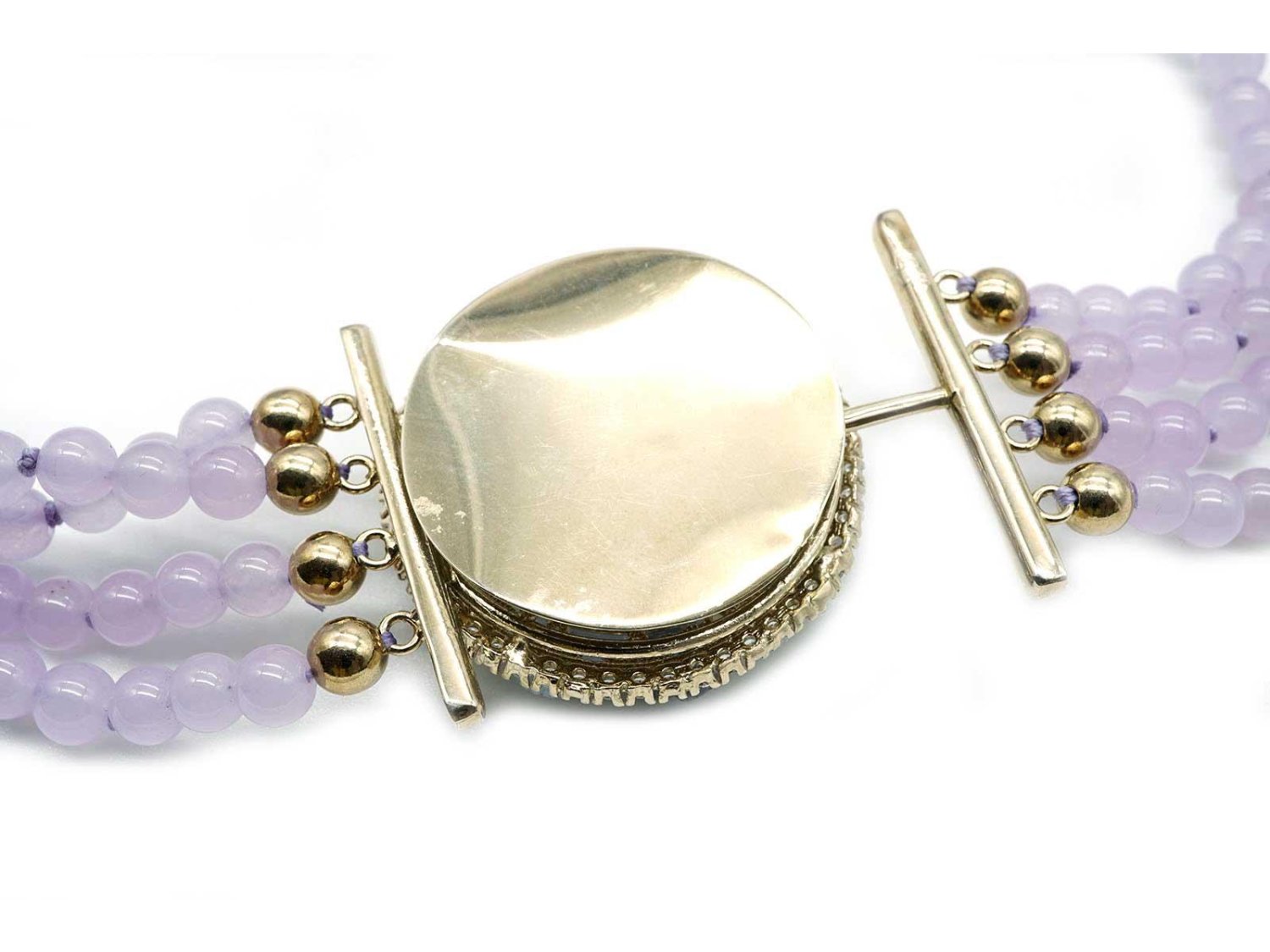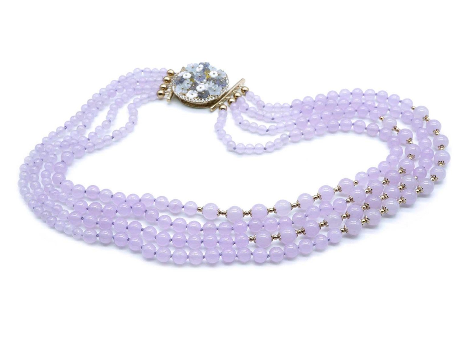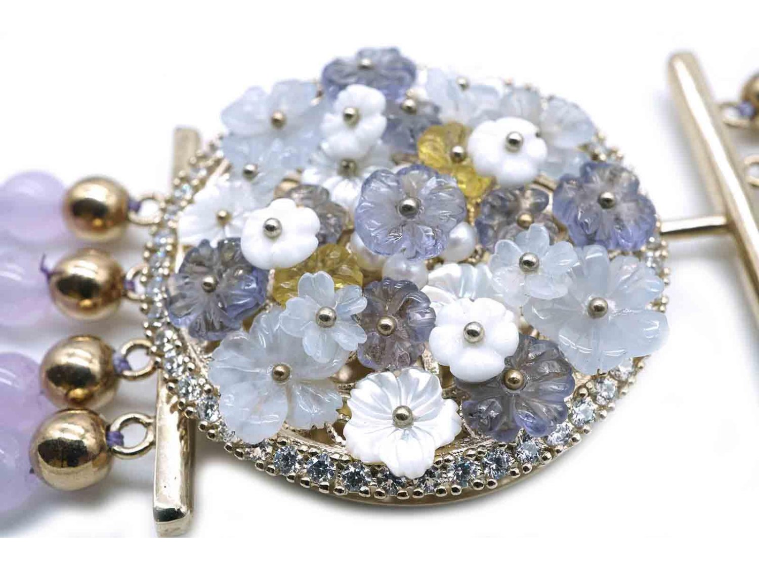 COLLANA in argento 925 placcato oro con giada naturale color lavanda e con ametista, quarzo, zirconi e madre perla. NUOVA!