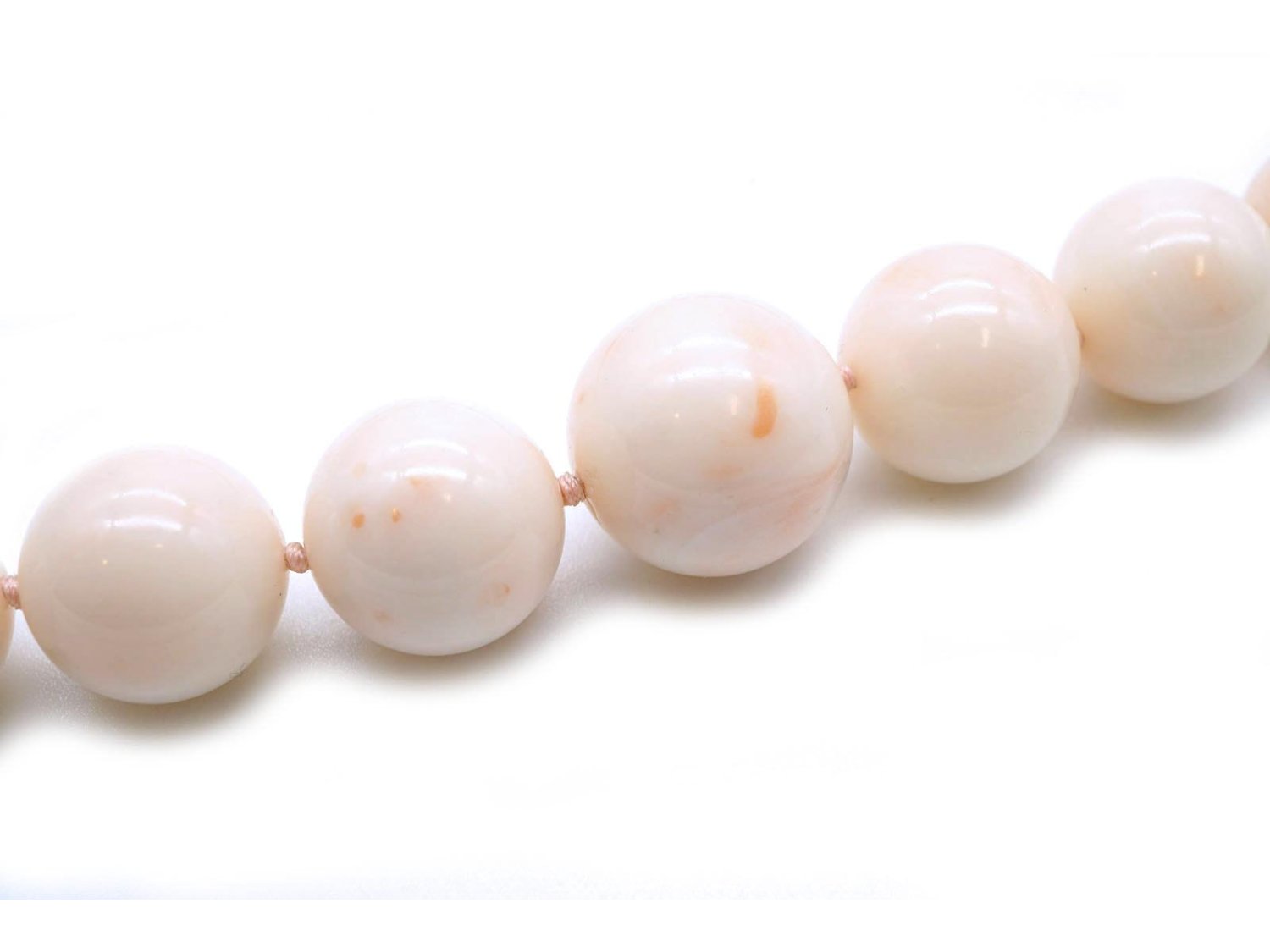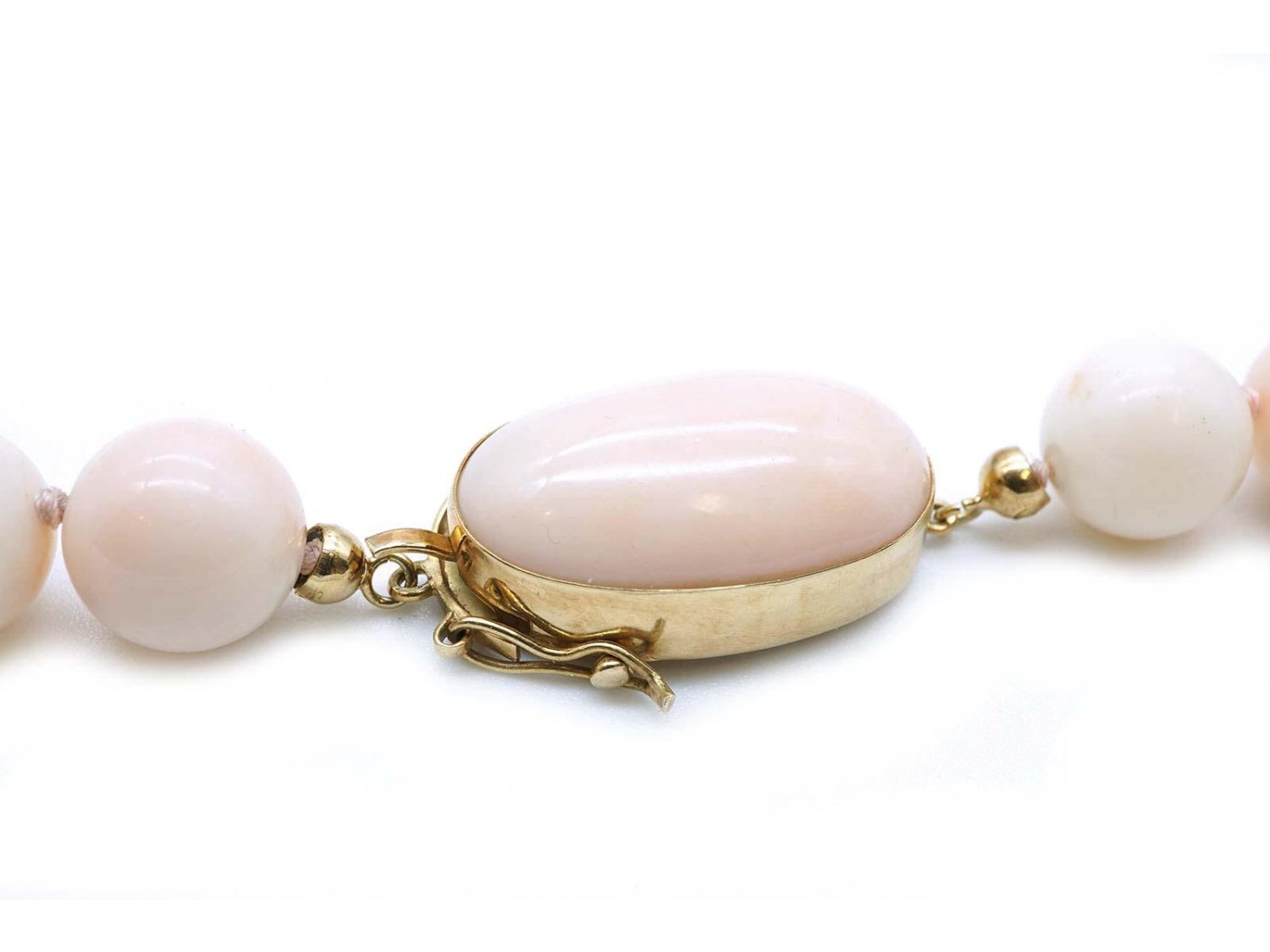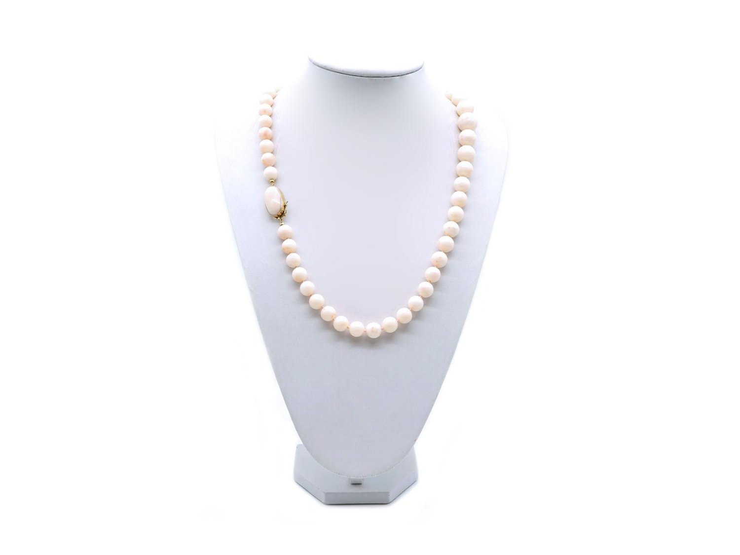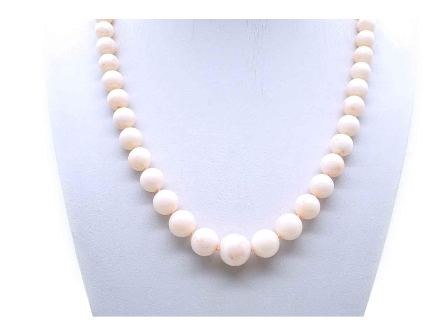 COLLANA in corallo bianco da mm 21.00 a mm 11.00 con chiusura in oro giallo 18Kt. NUOVA!