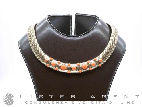 COLLANA tubolare in argento 925 placcato oro giallo con corallo. NUOVA!