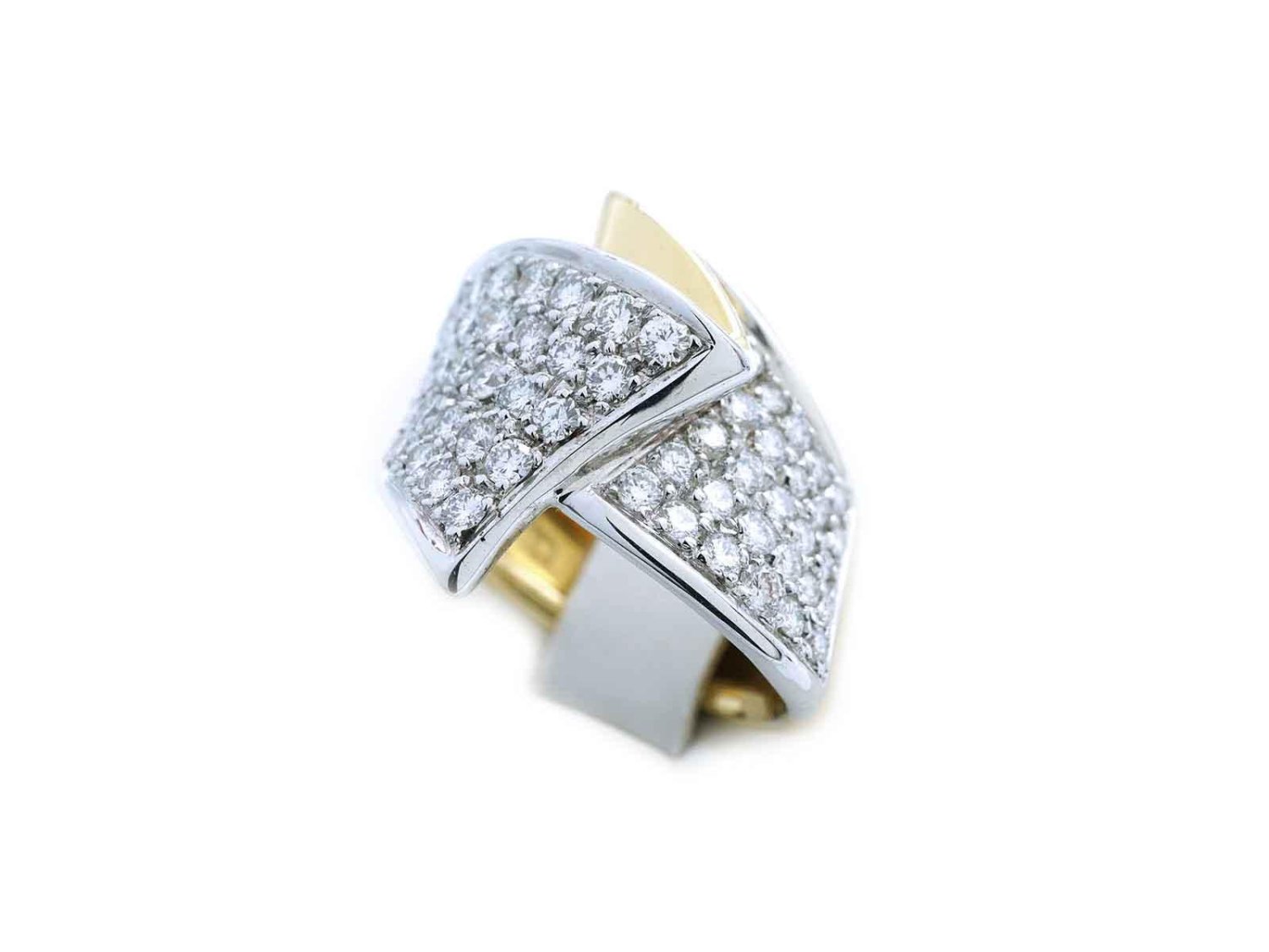 DAMIANI anello Fascia contrariè in oro giallo e bianco 18Kt con diamanti ct 1.68 H Misura 14. NUOVO!