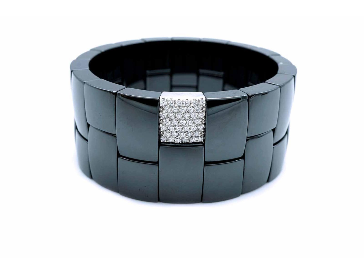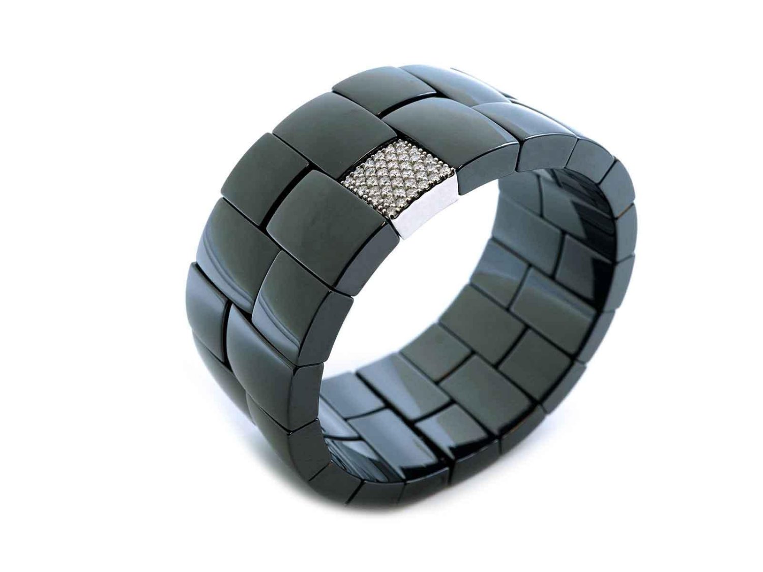 DEMEGLIO bracciale elastico in ceramica nera High-Tech e oro bianco 18Kt con diamanti ct 0.67 Ref. 207547-962NQDBOB. NUOVO!