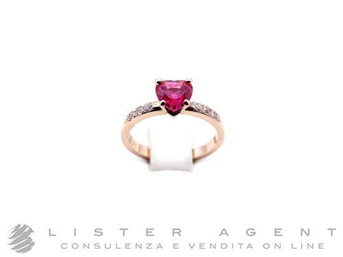 DODO by Pomellato anello Cuore in oro rosa 9Kt con rubino sintetico ct 0.87 e diananti bianchi ct 0.13 Ref. DAC3001_HEART_DSR9R. NUOVO!