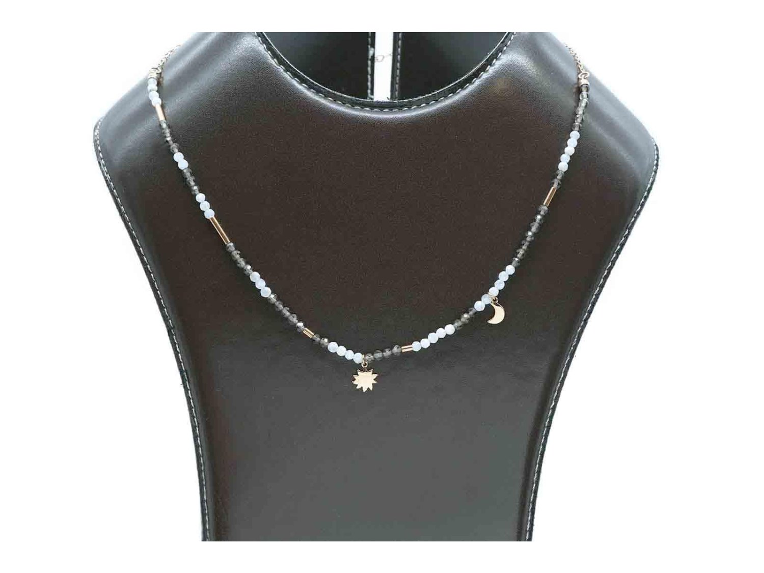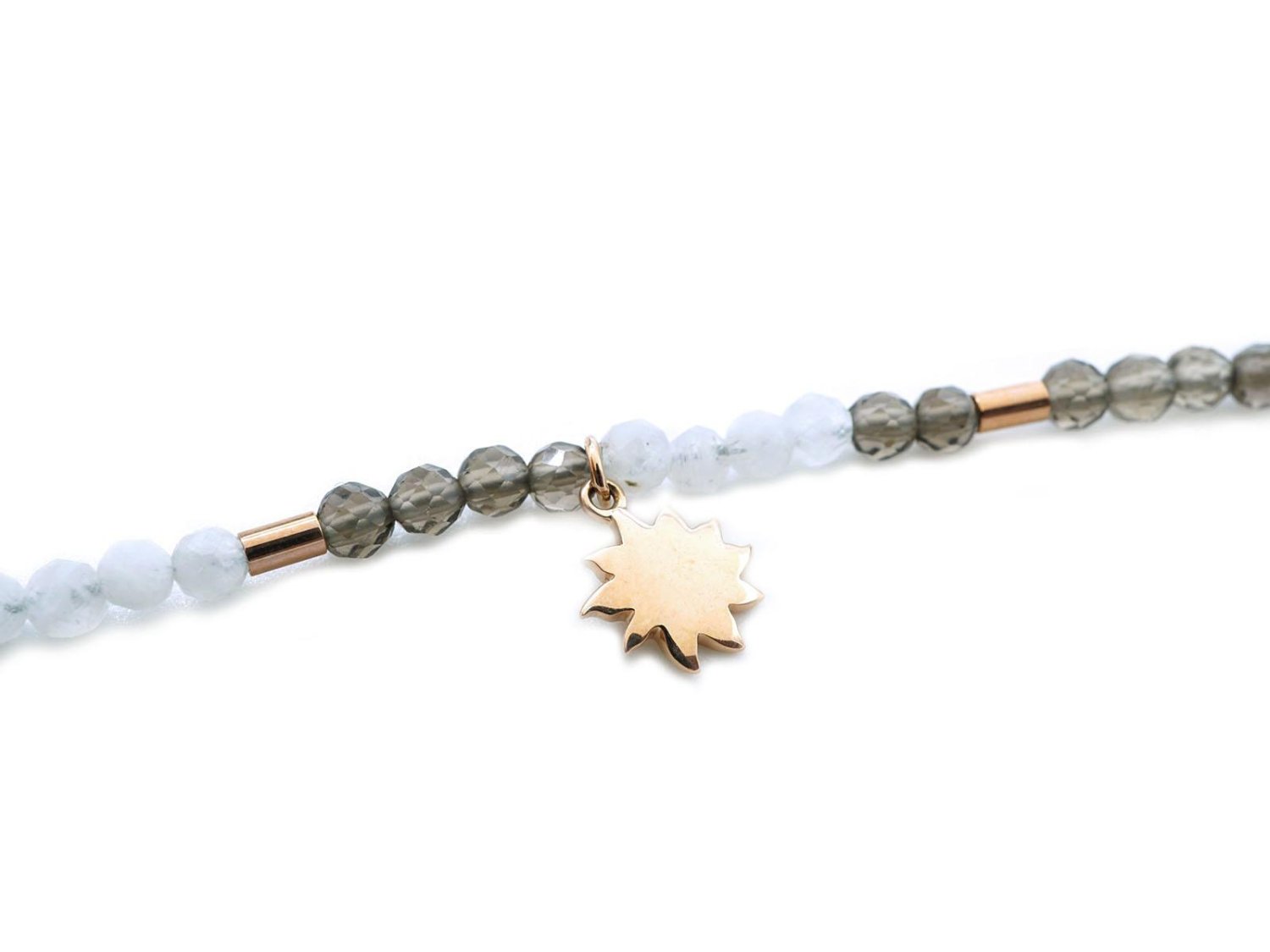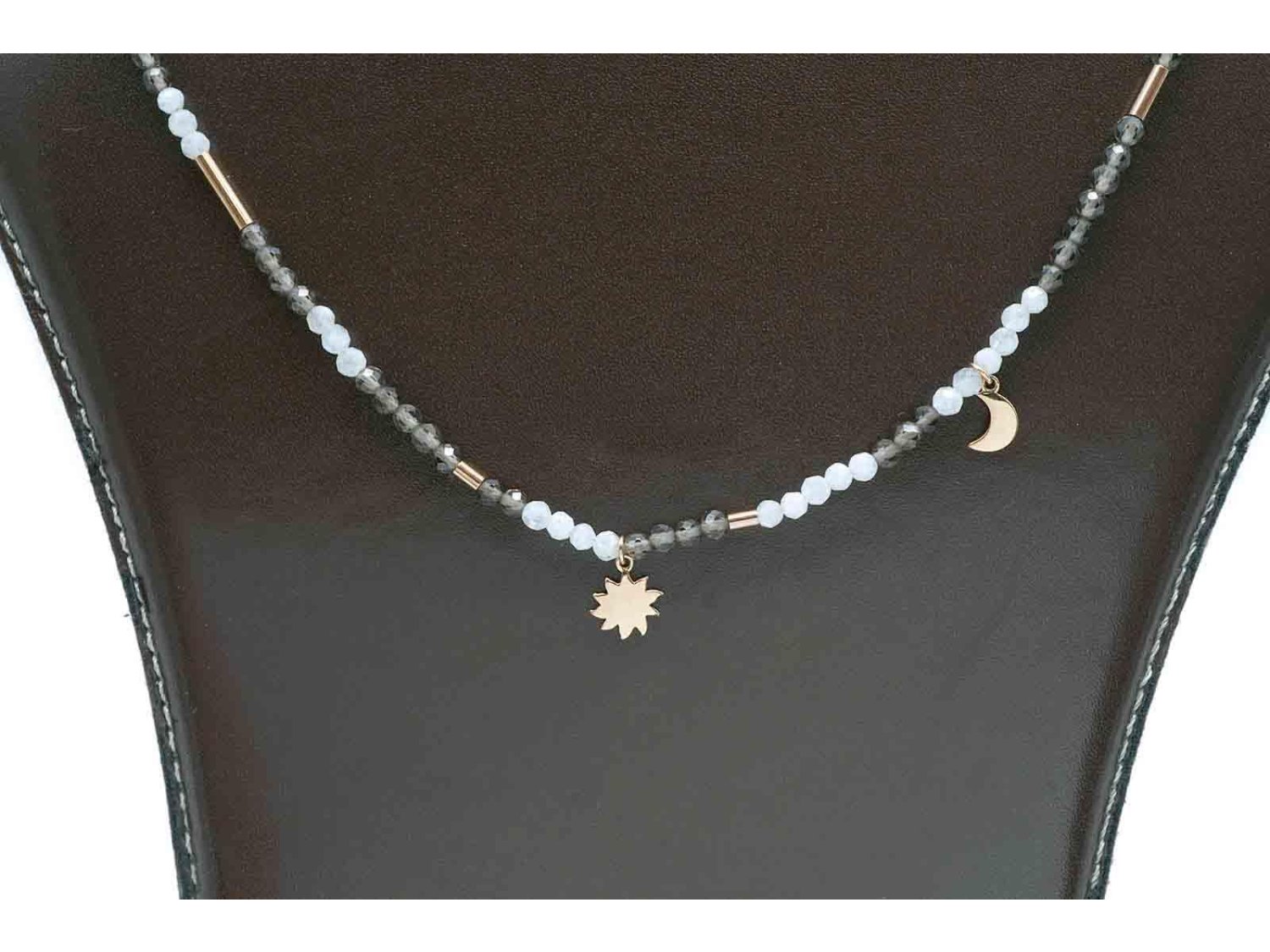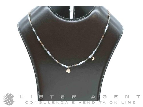 DODO by Pomellato collana Moon & Sun in oro rosa 9Kt con quarzo fumè, adularia e 2 ciondoli mini icon in oro rosa 9Kt Ref. DCC2010_MOSUN_FAD9R. NUOVA!