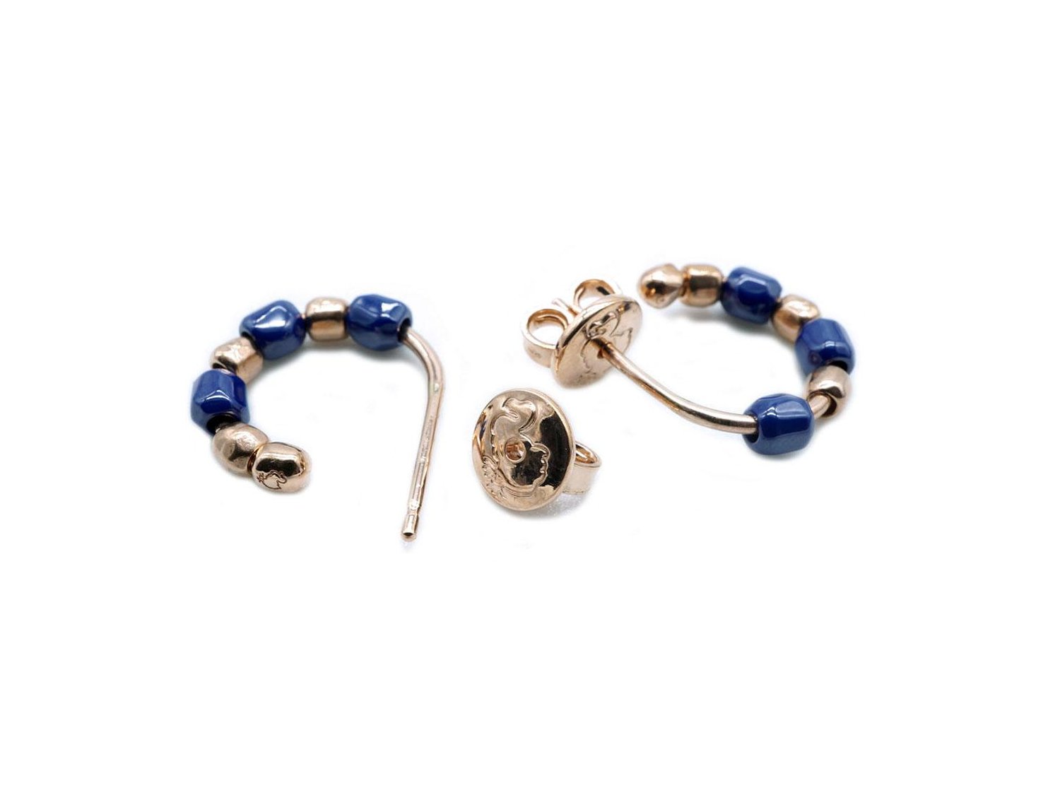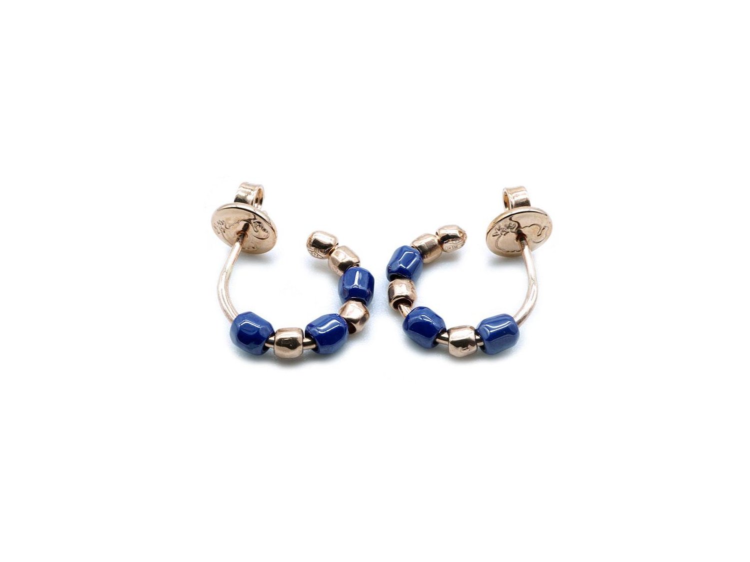 DODO by Pomellato orecchini cerchio Mini Granelli in oro rosa 9Kt e ceramica Ref. DOC1002_GRANX_CBL9R. NUOVI!