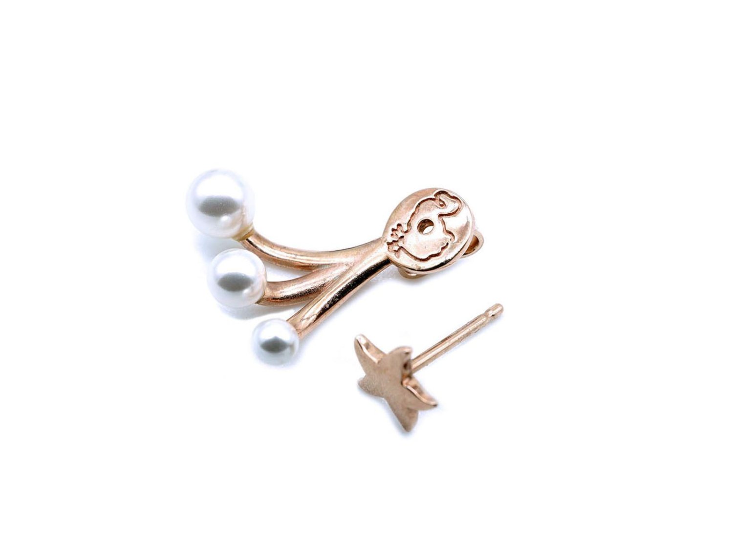 DODO by Pomellato piercing orecchino sinistro singolo Stellina in oro rosa 9K con 3 perle di cristallo Ref. DHC2010_LSTAR_WCP9R. NUOVO!