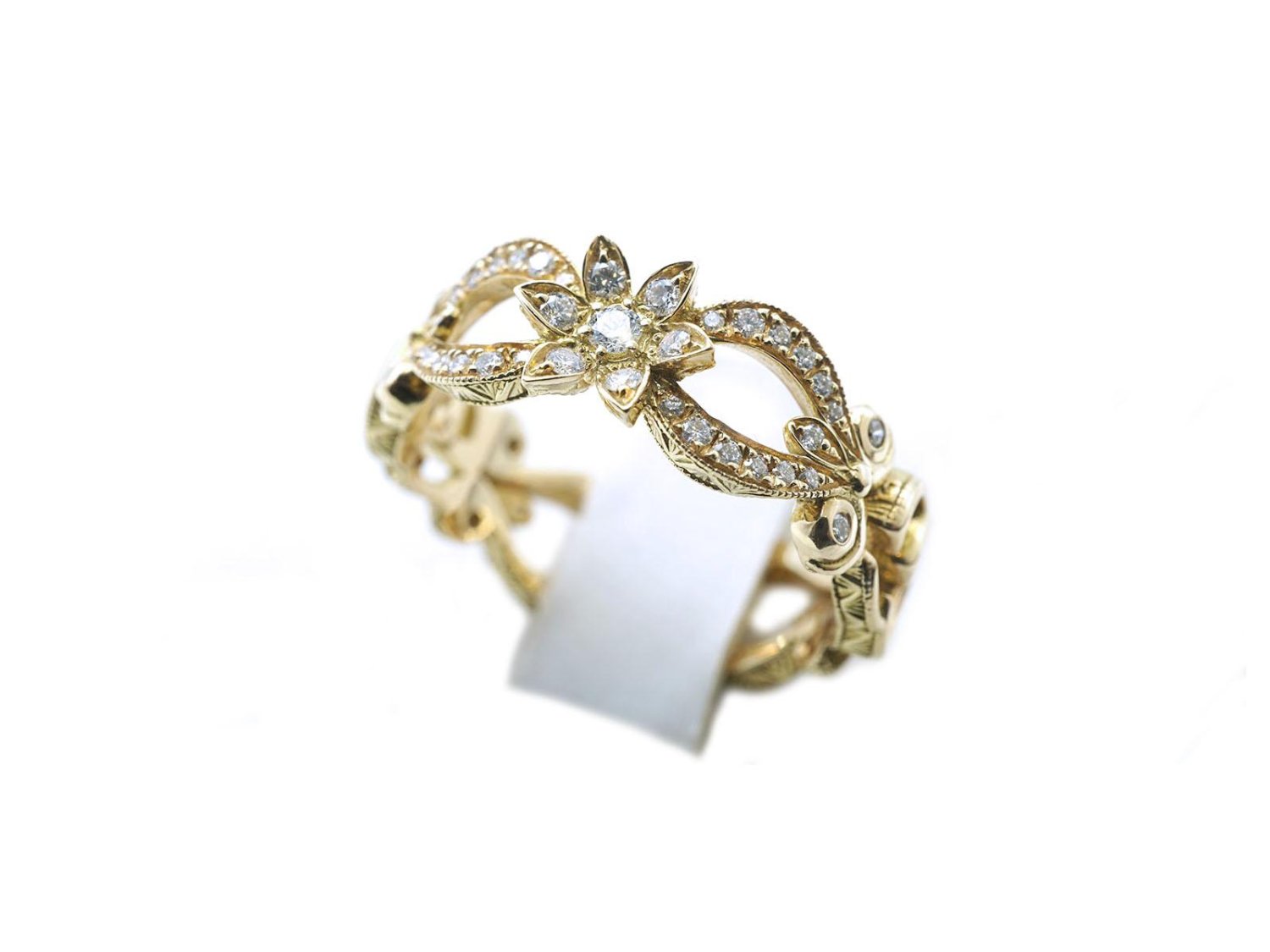 GUCCI anello Flora in oro giallo 18Kt e diamanti Misura 14 Ref. YBC629828001014. NUOVO!