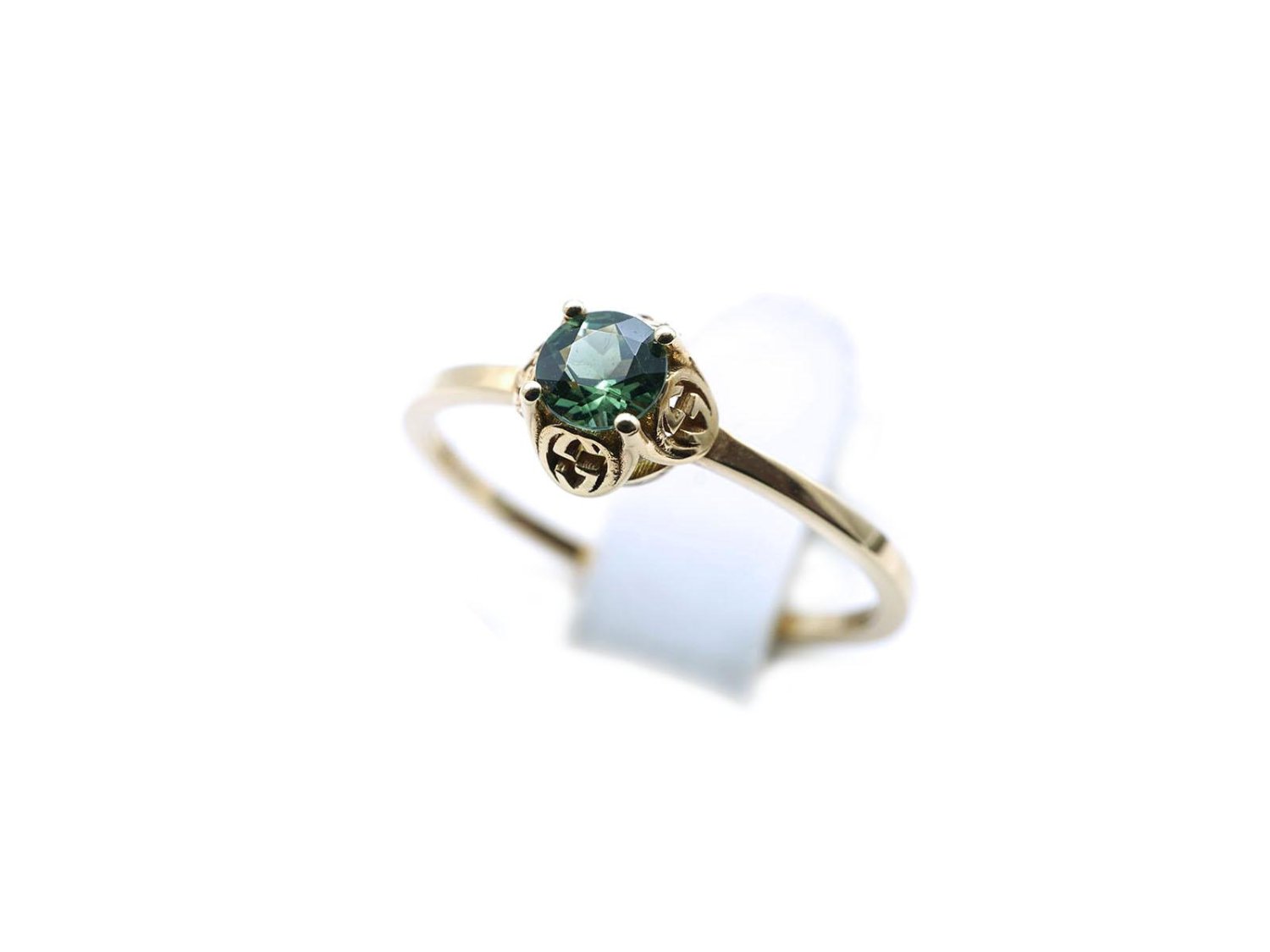GUCCI anello Interlocking G Ring in oro giallo 18Kt con tormalina verde Misura 14 Ref. YBC662428001. NUOVO!