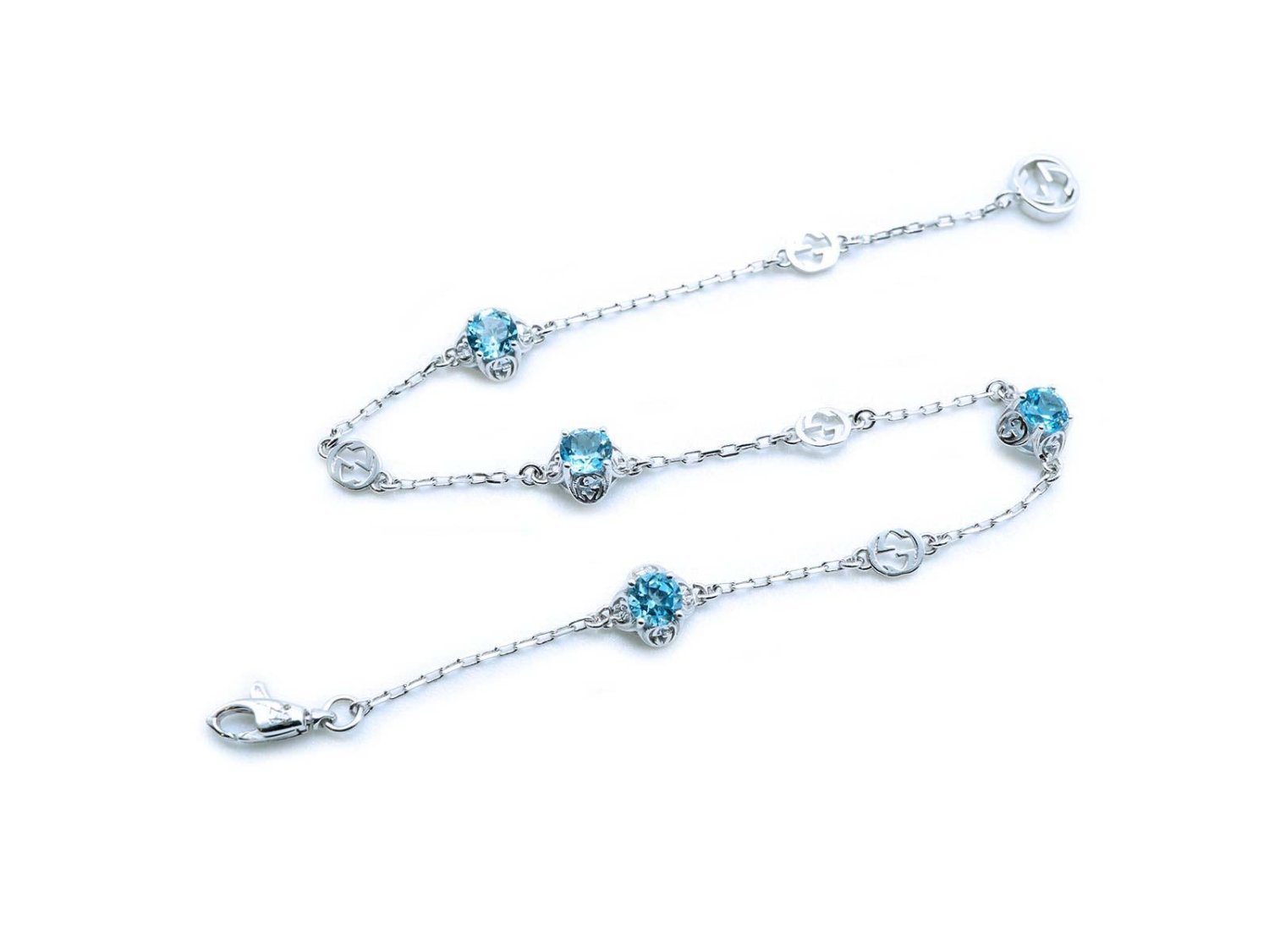 GUCCI bracciale Interlocking in oro bianco e topazi azzurri Ref. YBA662430002017. NUOVO!