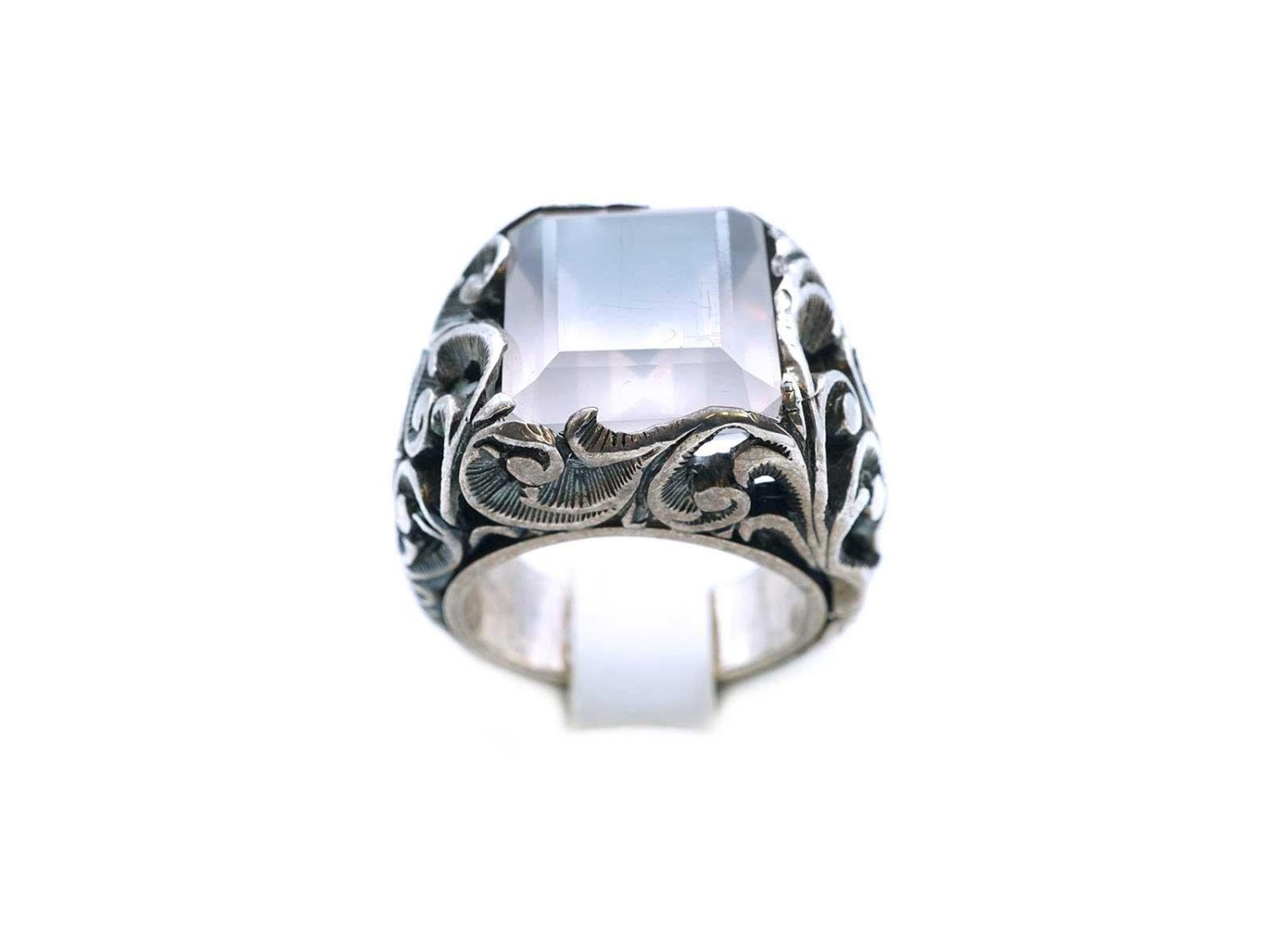 MARIA & LUISA Jewels anello in argento 925 brunito con pietra naturale misura 14 Ref. AA0014/V1. NUOVO