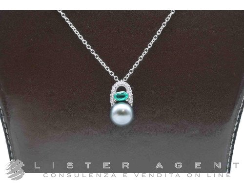 MIMI' collana Milano Collection con ideogramma Ogni Bene in oro bianco 18Kt con diamanti ct 0.26 G e perla nera South Sea MM 11 Ref. P23VIRB11SM. NUOVA