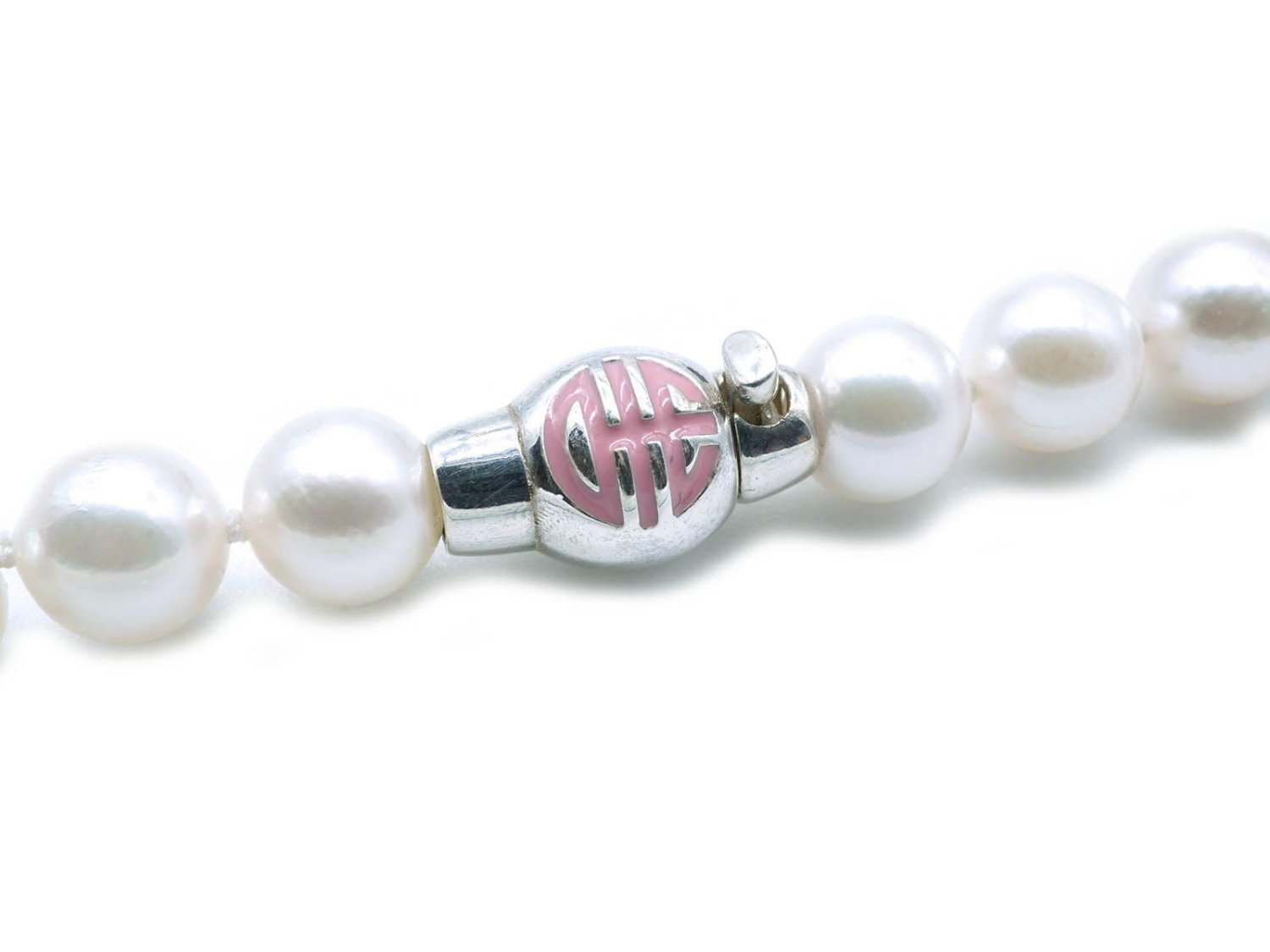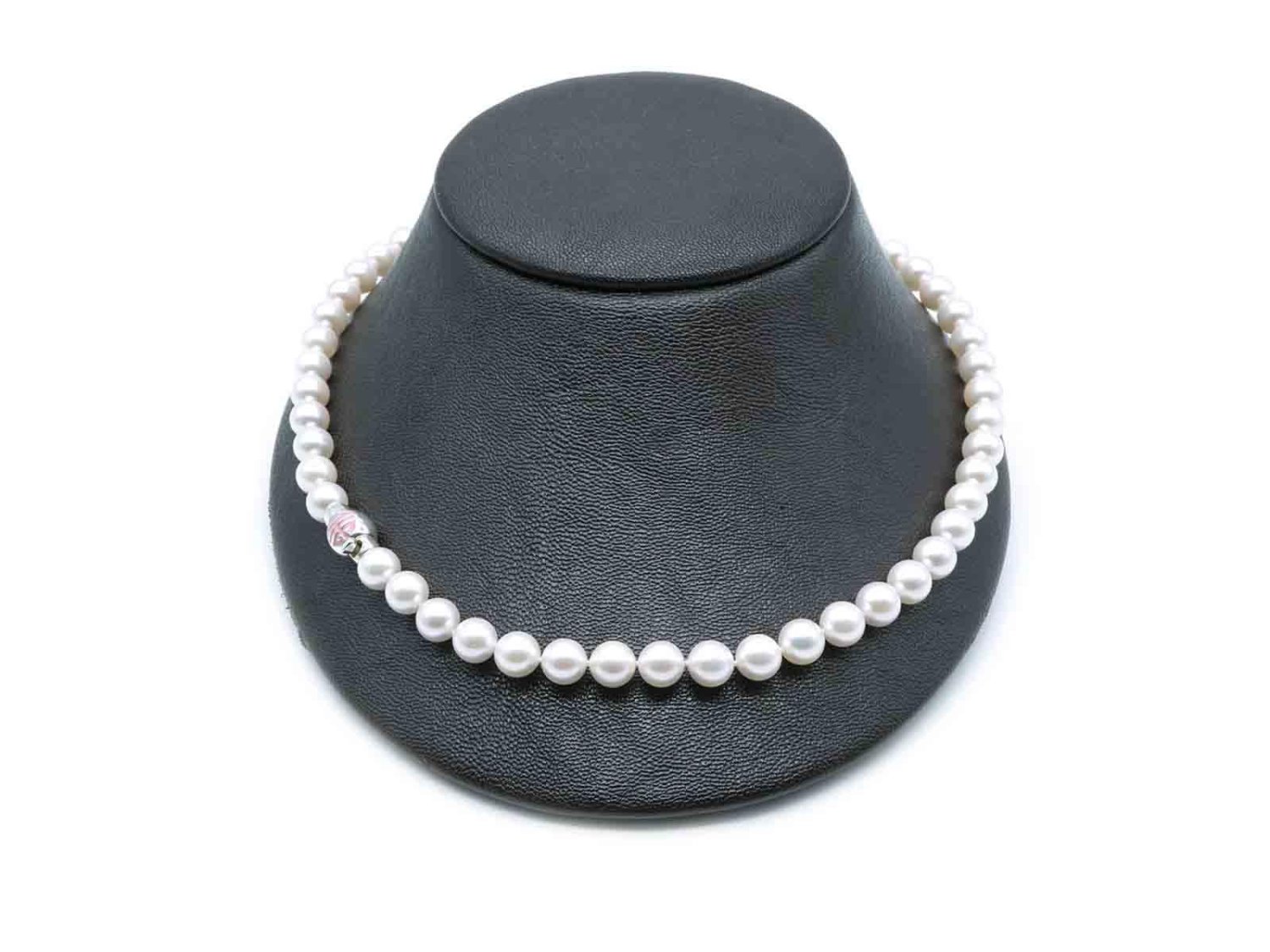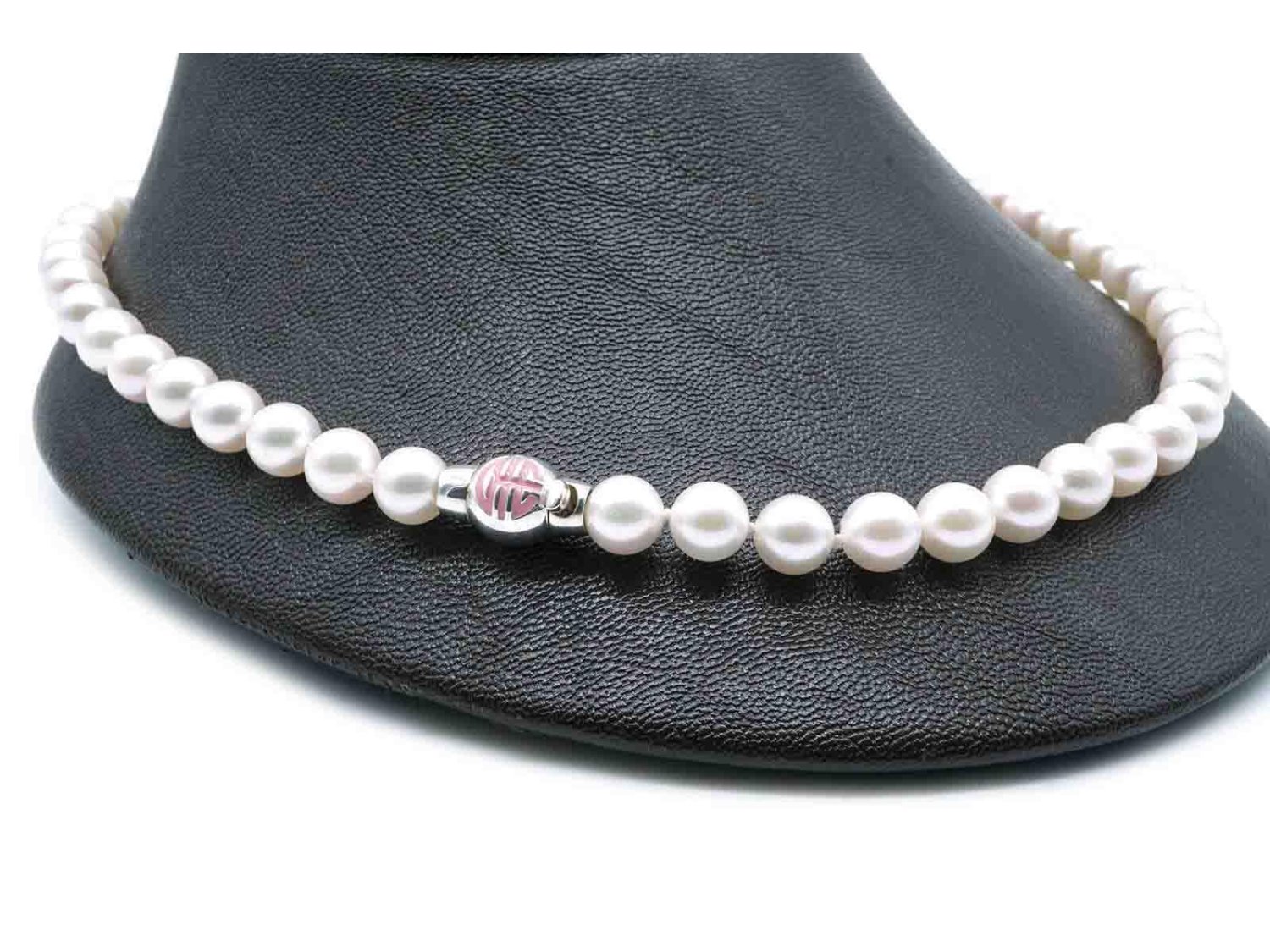 MIMI' collana Ognibene con perle Akoya bianche coltivazione in acqua salata mm 7.50-8.00 con chiusura in argento 925 smaltato rosa. NUOVA!