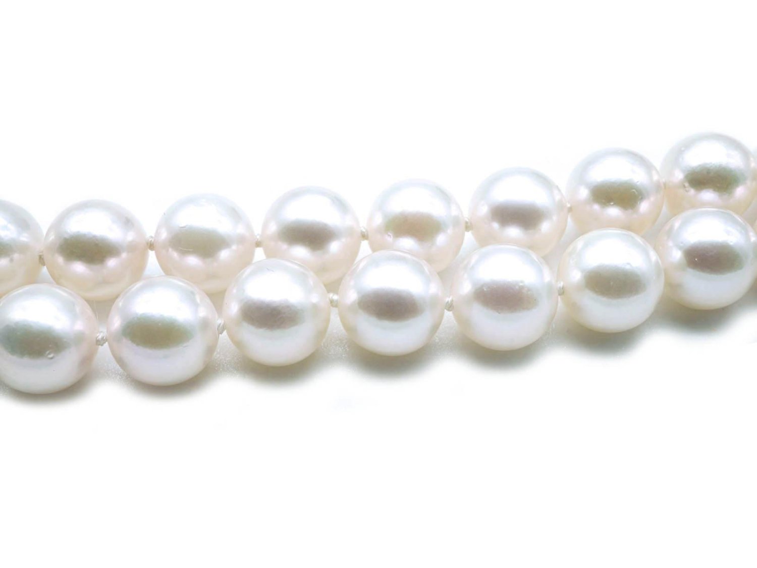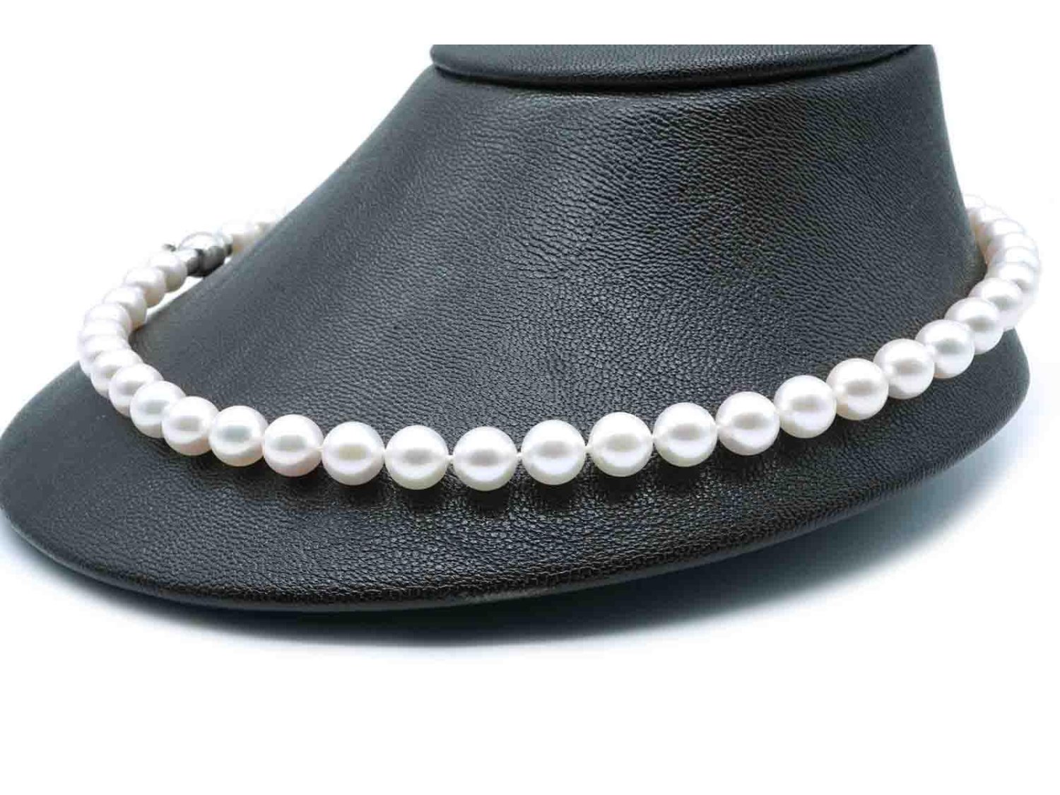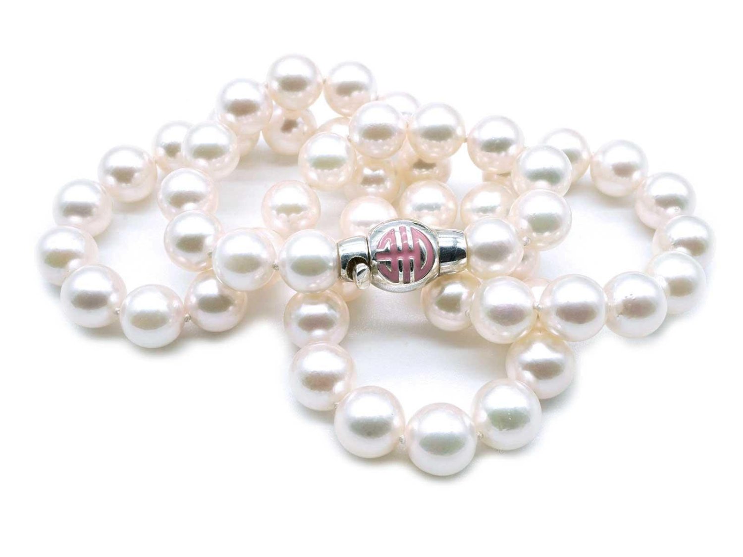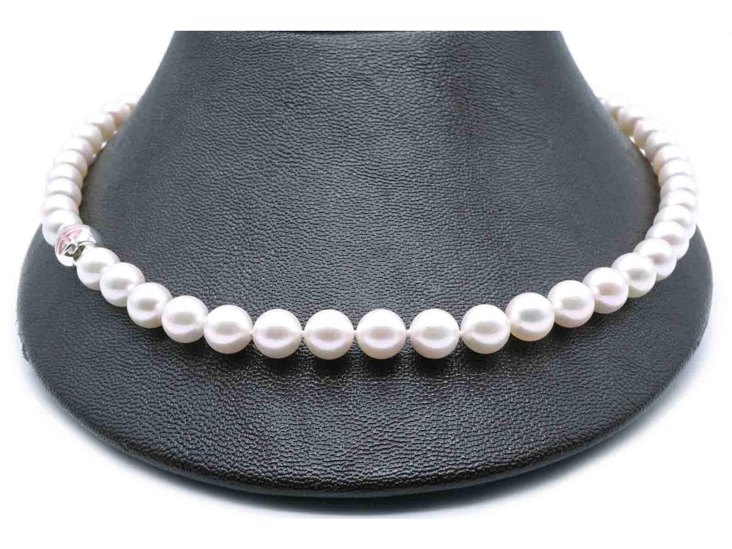 MIMI' collana Ognibene con perle Akoya bianche coltivazione in acqua salata mm 7.50-8.00 con chiusura in argento 925 smaltato rosa. NUOVA!