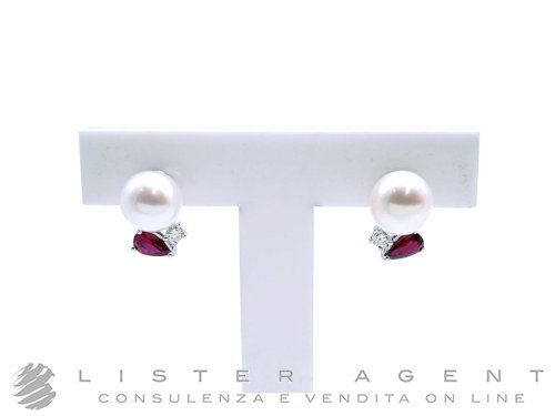 MIMI' orecchini Classic Akoya in oro bianco 18Kt con diamanti ct 0.10 G Vs, rubino ct 0.50 e perla Akoya mm 7.00-7.50 Ref. O25BCBKGRB. NUOVI!