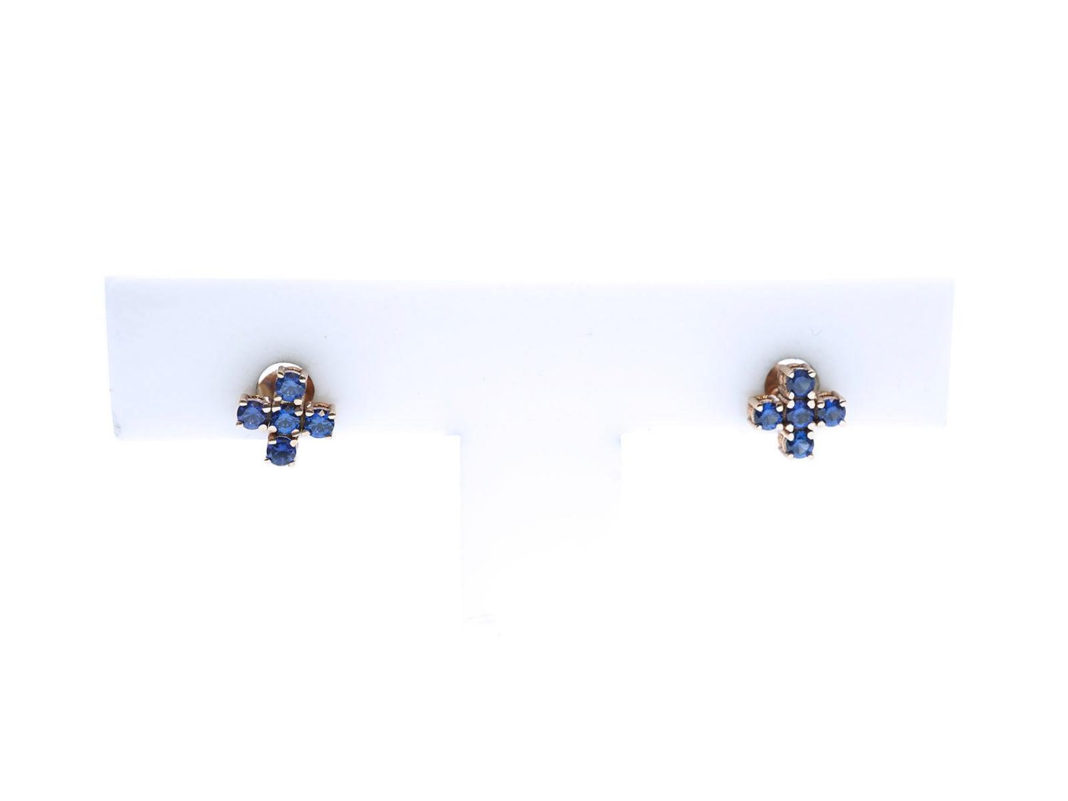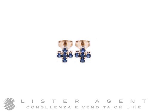 ORECCHINI Croce in oro rosa 18Kt e zaffiri blu ct 0.22 Ref. ZAFF1. NUOVI!