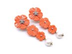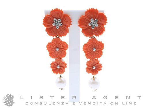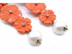 ORECCHINI in argento 925 con 3 Rose in pasta di corallo con perla naturale e cristalli di swarovski. NUOVI!