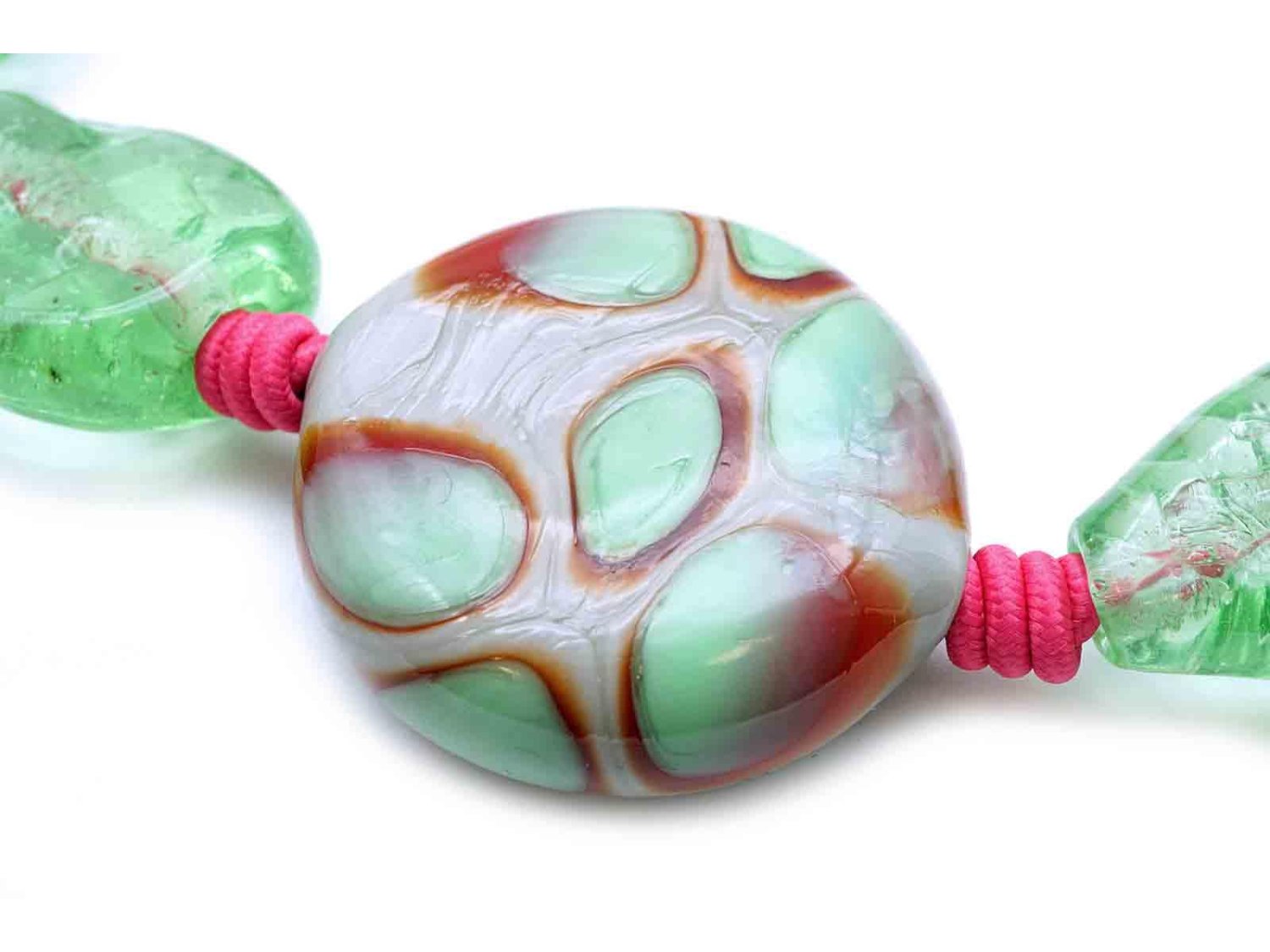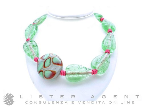 PAMURRINA collana in vetro di Murano verde trasparente. NUOVA!