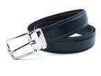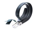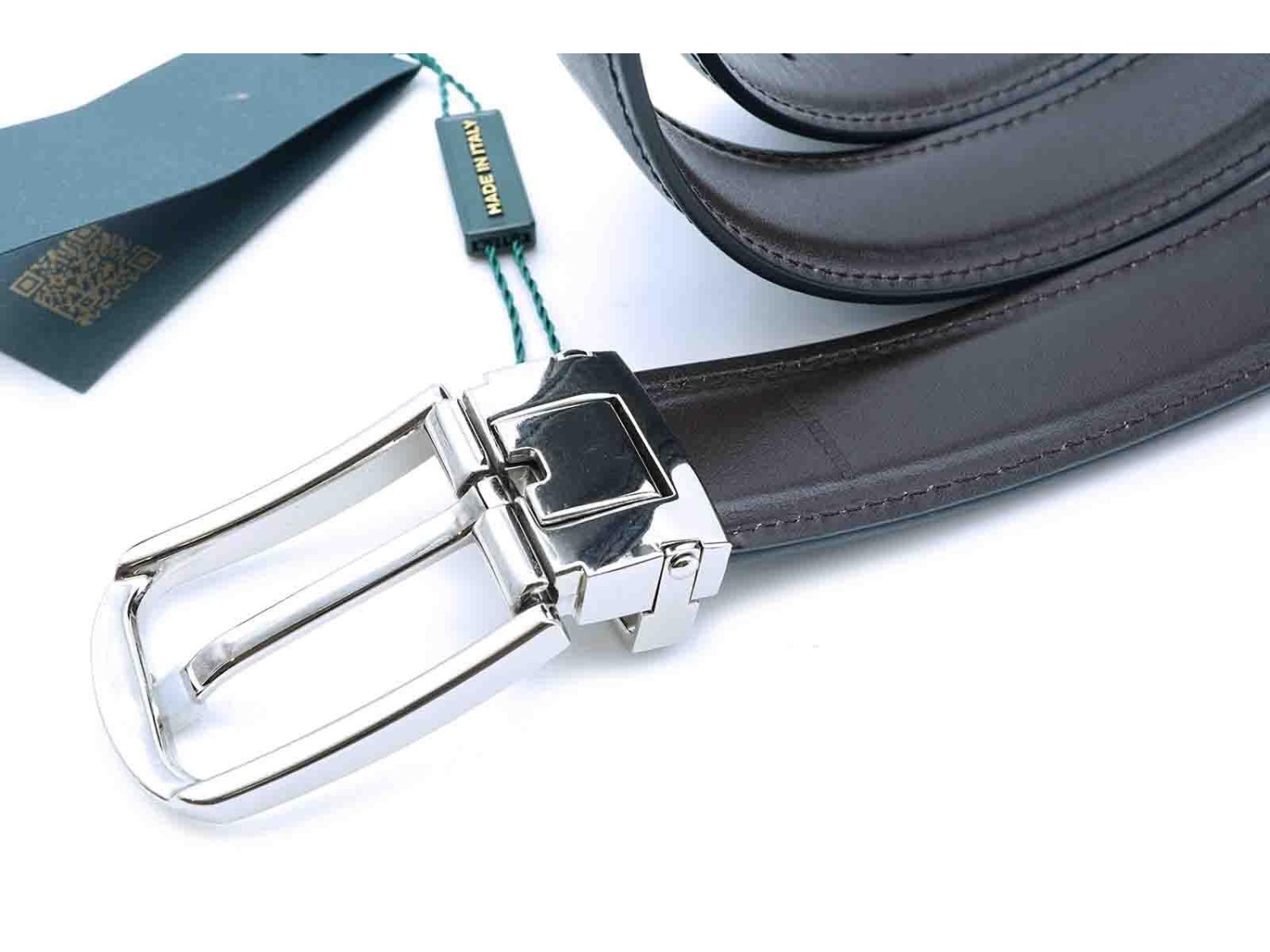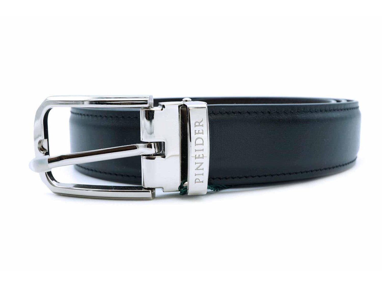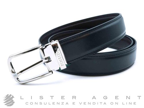 PINEIDER cinta Daily 23 in pelle di vitello nera e marrone con fibbia ovale in acciaio lucido Ref. PSS722059. NUOVA!