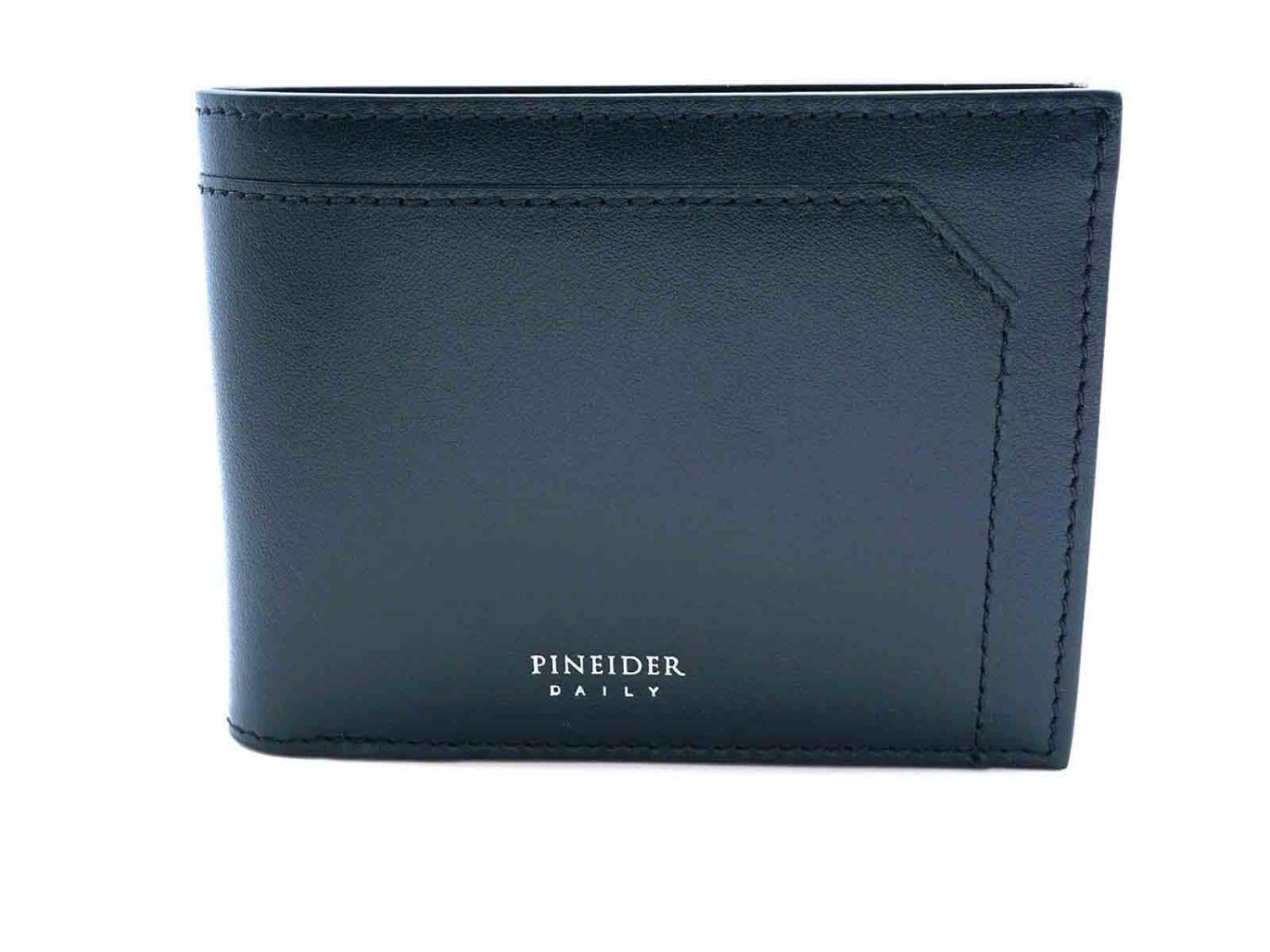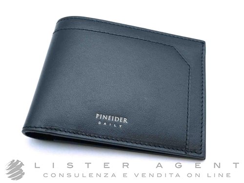PINEIDER portafoglio Daily in pelle nera liscia 8CC Ref. 710056. NUOVO!