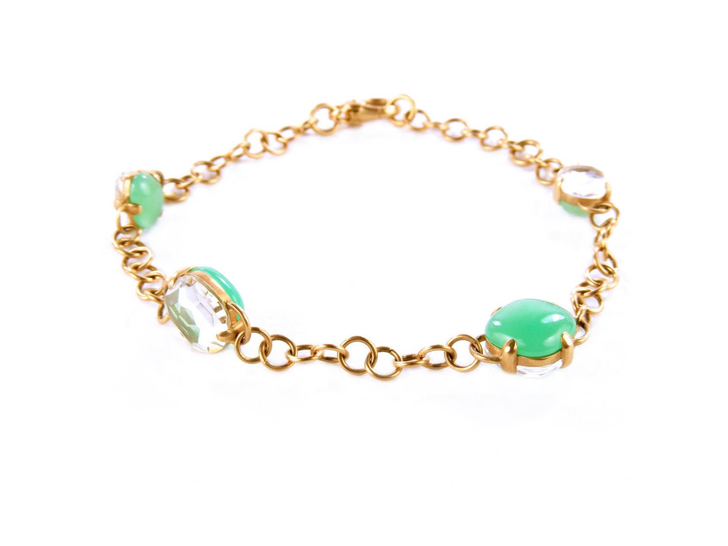 POMELLATO bracelet Capri en or rose 18Kt brossé avec cristal de roche et chrysopase Ref. BCA705O7JCP. NEUF!