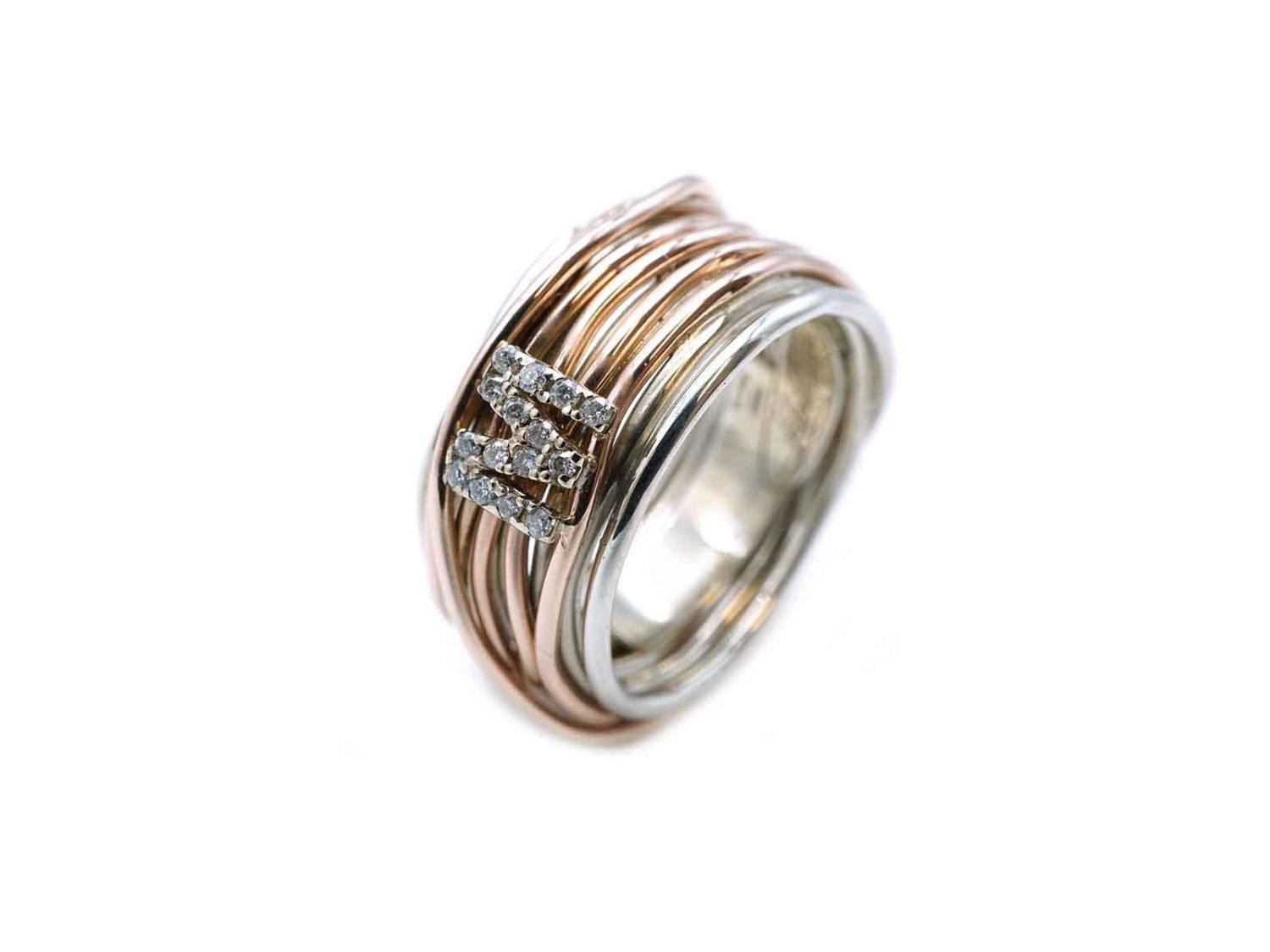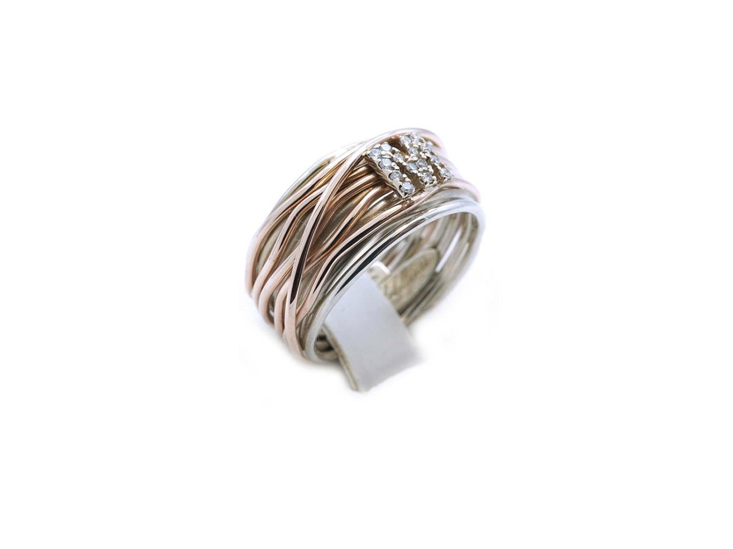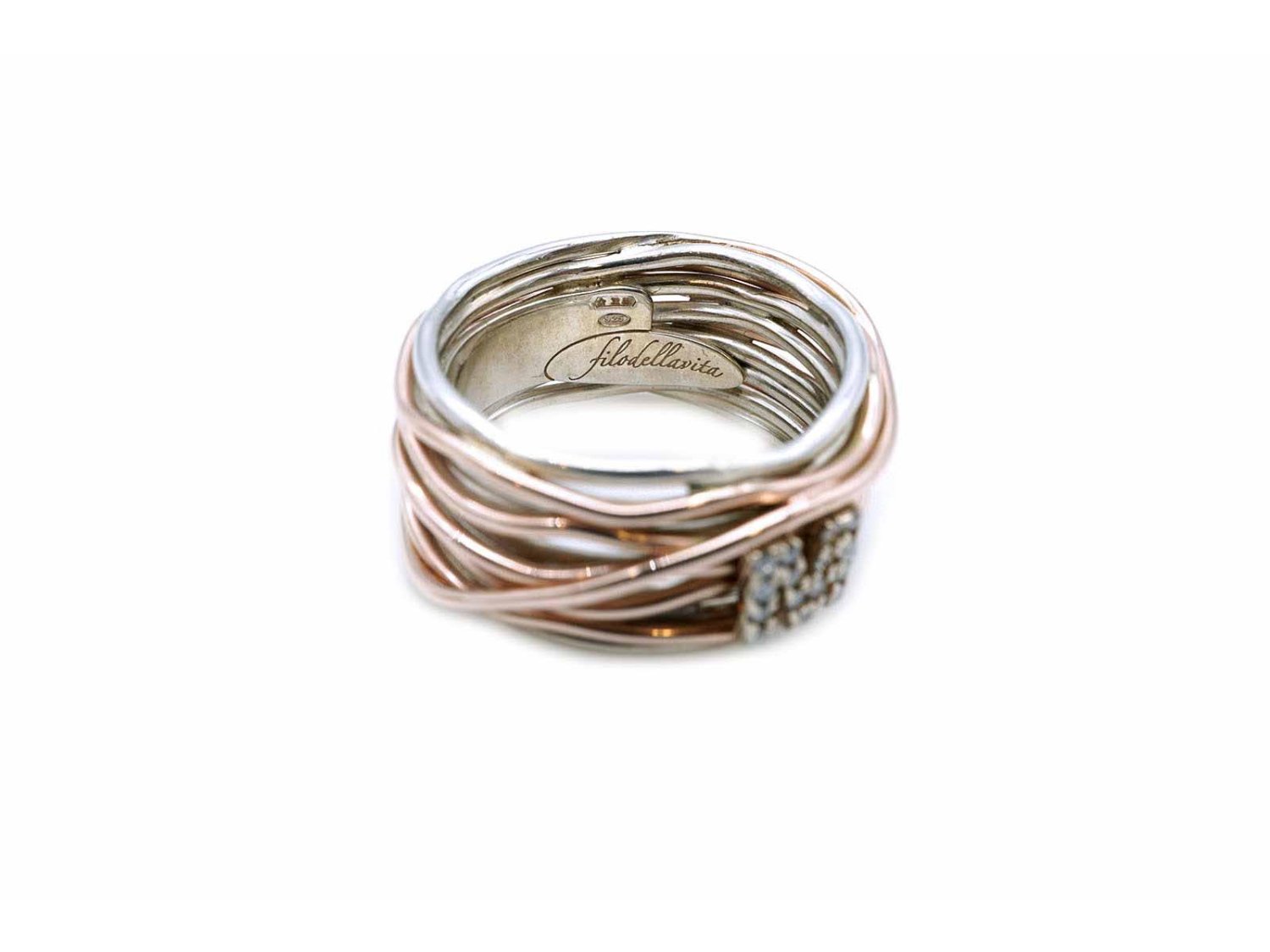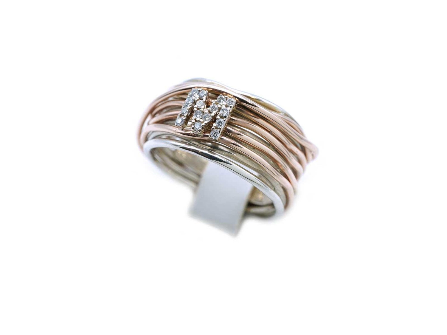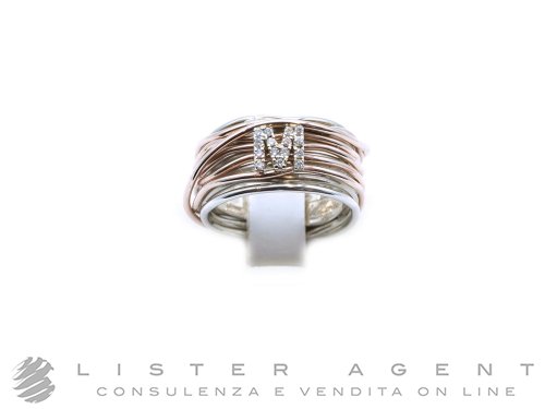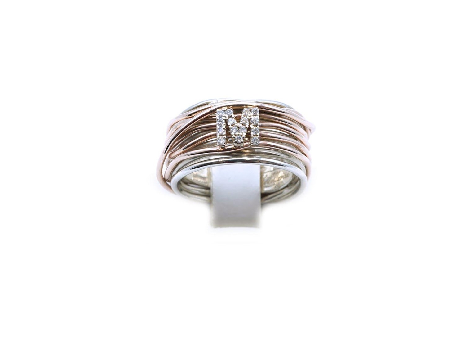 RUBINIA anello Filodellavita 13 fili in oro rosa 9kt e argento 925 con iniziale M con diamanti Misura 16 Ref. AN290AR. NUOVO!