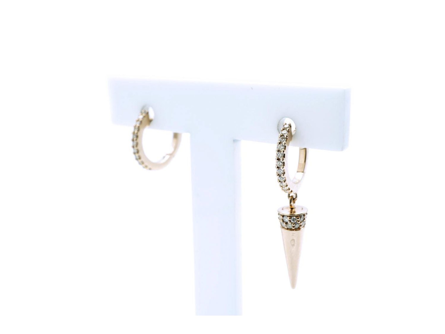 SONGA orecchini Cerchi con pendente Cono in oro rosa 18Kt e diamanti ct 0.27 Ref. 247001-VE29536DPS. NUOVI!