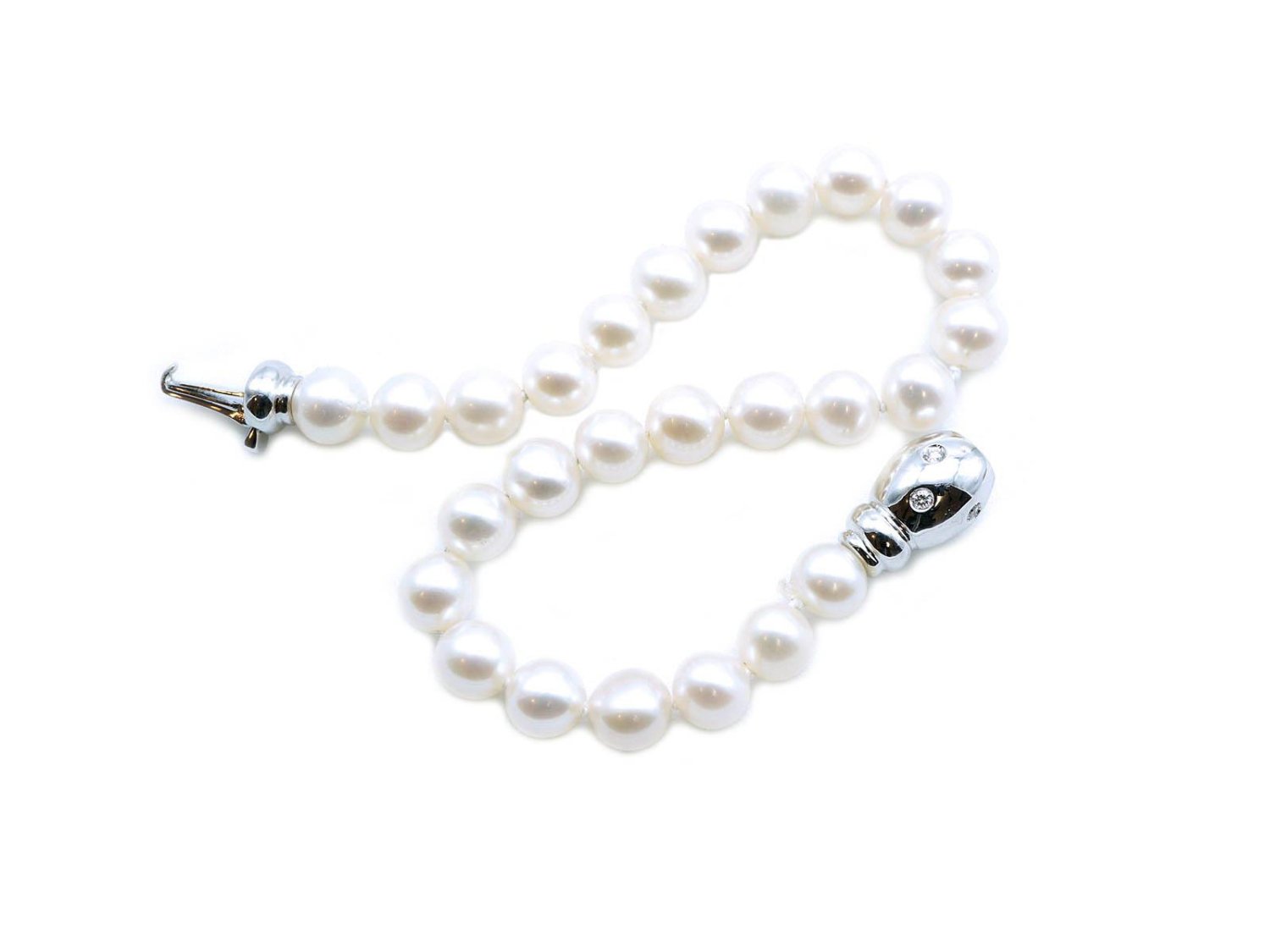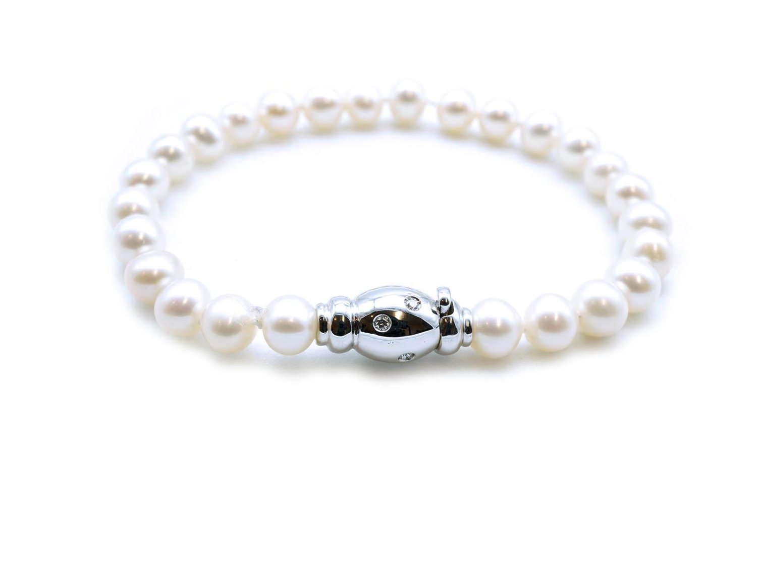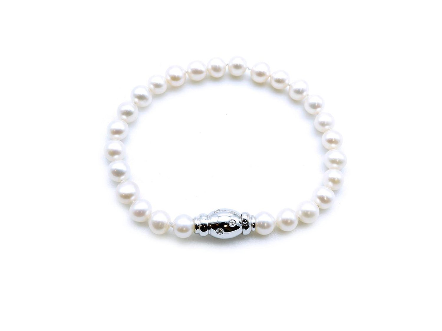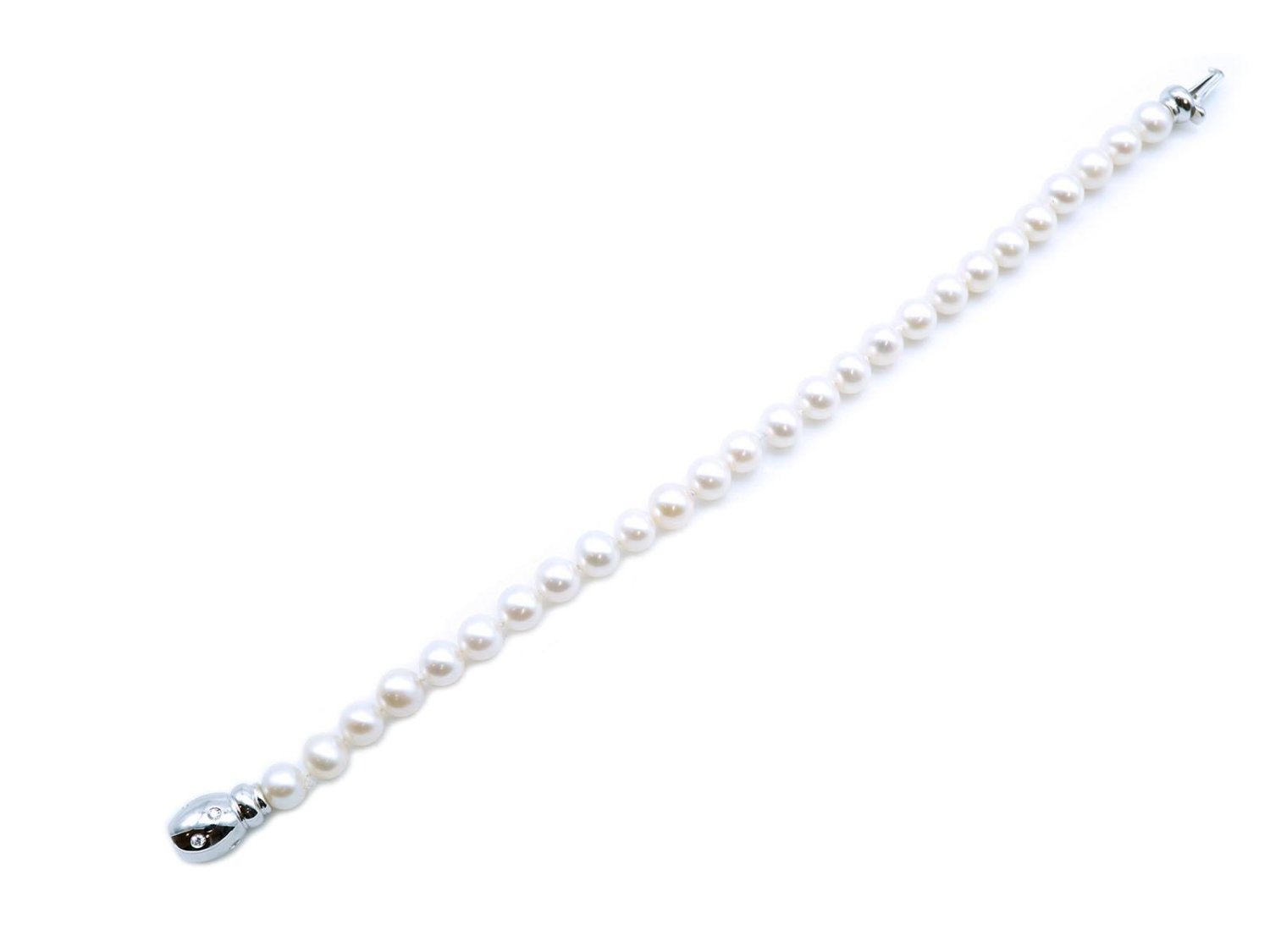 TAVERNA bracciale Perle di acqua dolce mm 6.20 e chiusura in oro bianco 18Kt con diamanti ct 0.12 Ref. 3428. NUOVO!