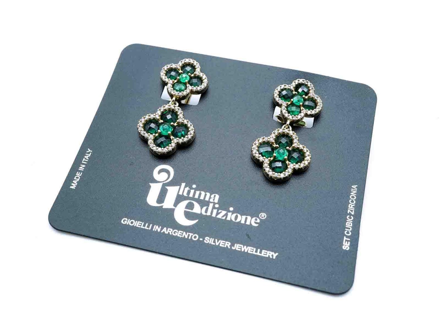 ULTIMA EDIZIONE orecchini in argento 925 con zirconi bianchi e verdi Ref. 0A07364. NUOVI!