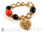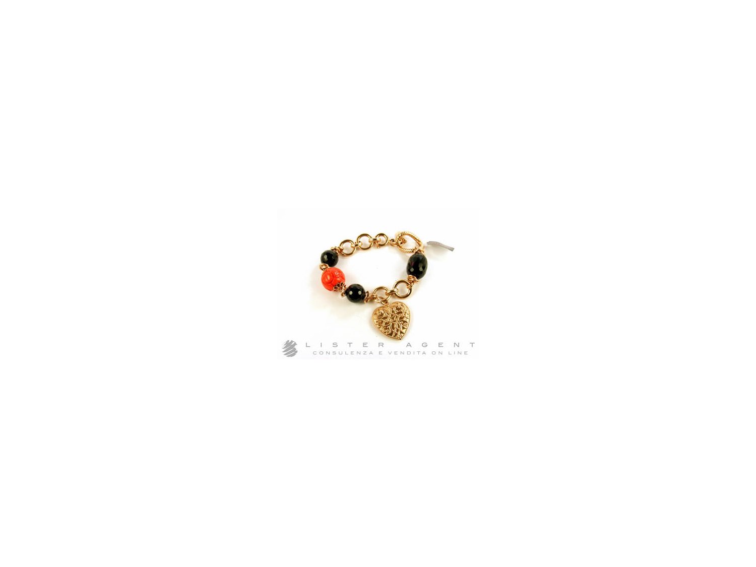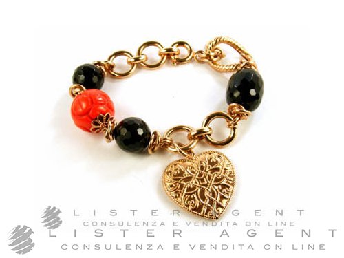 VANTO bracelet en argent plaqué or rose 925 avec onyx et bambou Ref. BR1481AG. NEUF!